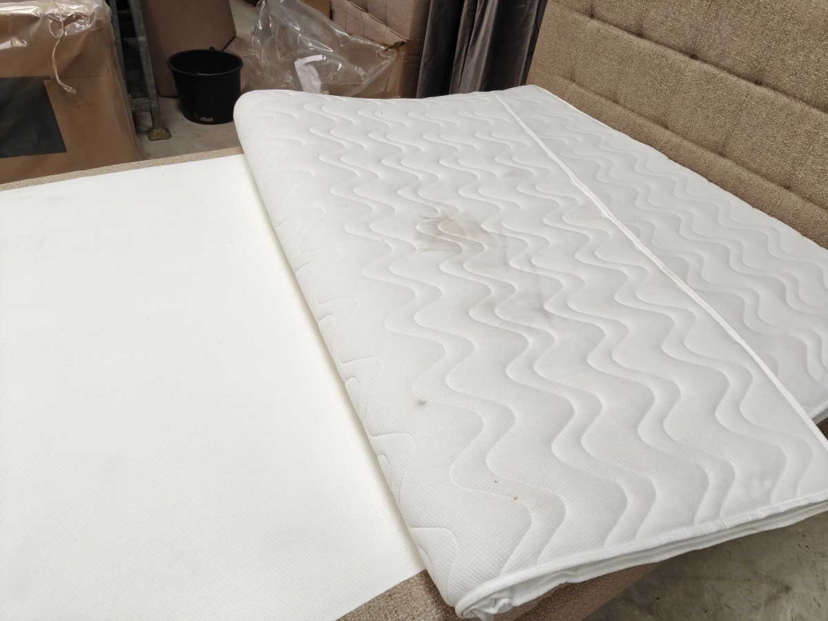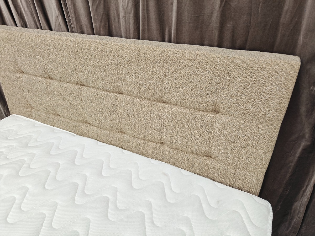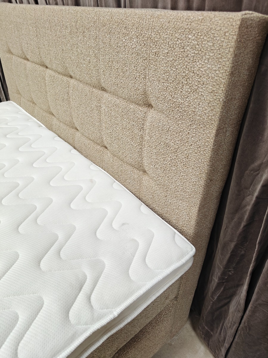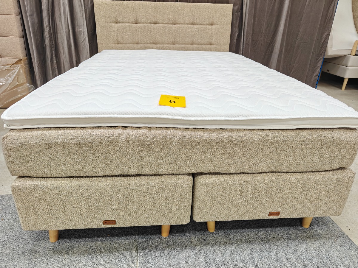 SÖVNN Kontinentalseng - 140x200 - Lys beige - Med gavl og topmadras. Udgået model og været brugt som udstillings model. Der må forventes små skrammer og at de kan være beskidte og skal rengøres. Stået på ekstern lager i et stykke tid. Vi anbefaler at komme til eftersyn. Salg for virksomhed.