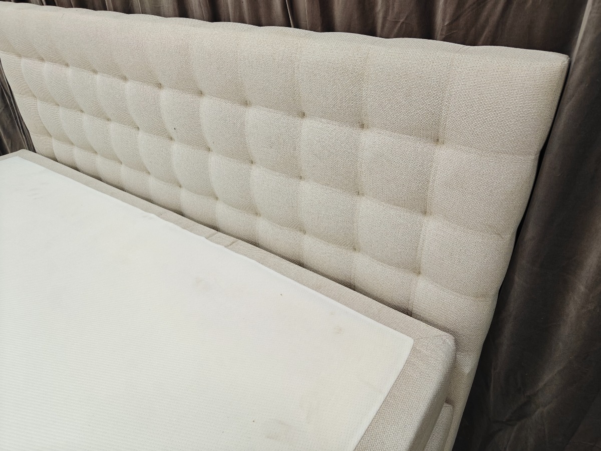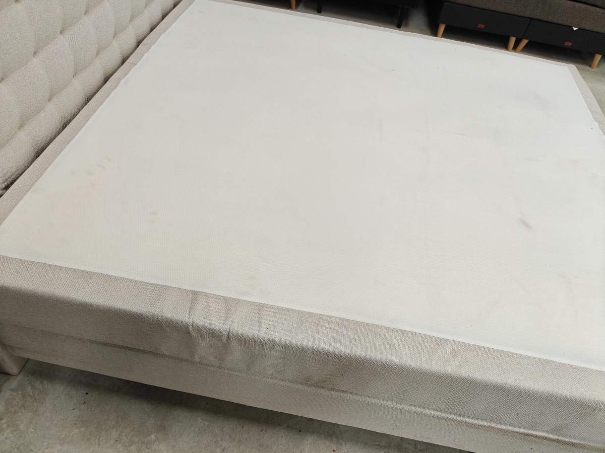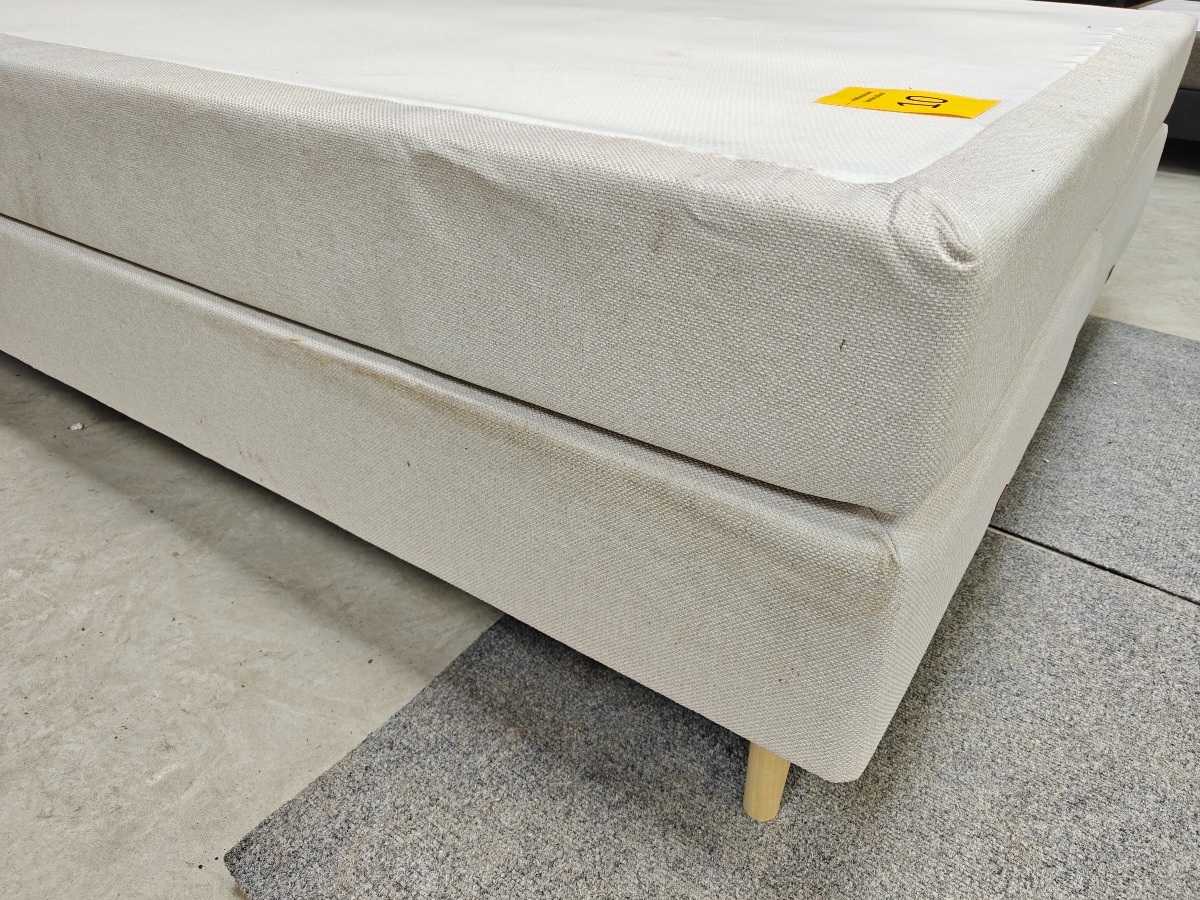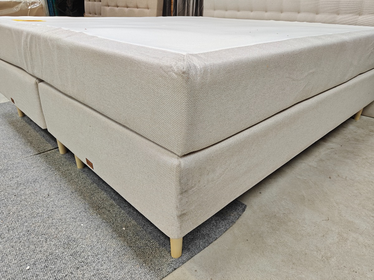 SÖVNN Kontinentalseng - 160x200 - Lys sand - med gavl. Udgået model og været brugt som udstillings model. Der må forventes små skrammer og at de kan være beskidte og skal rengøres. Stået på ekstern lager i et stykke tid. Vi anbefaler at komme til eftersyn. Salg for virksomhed.
