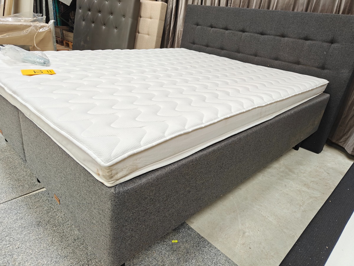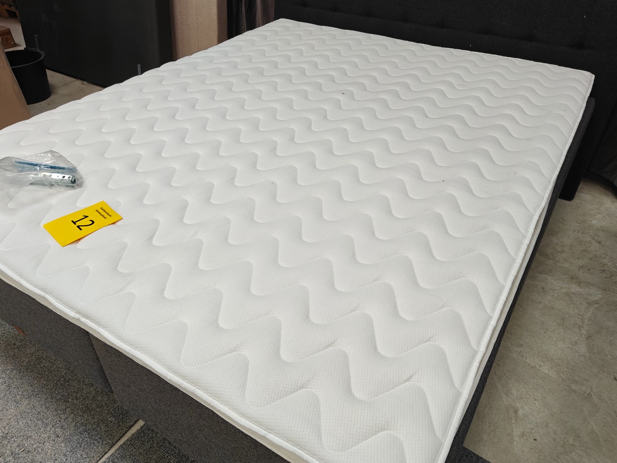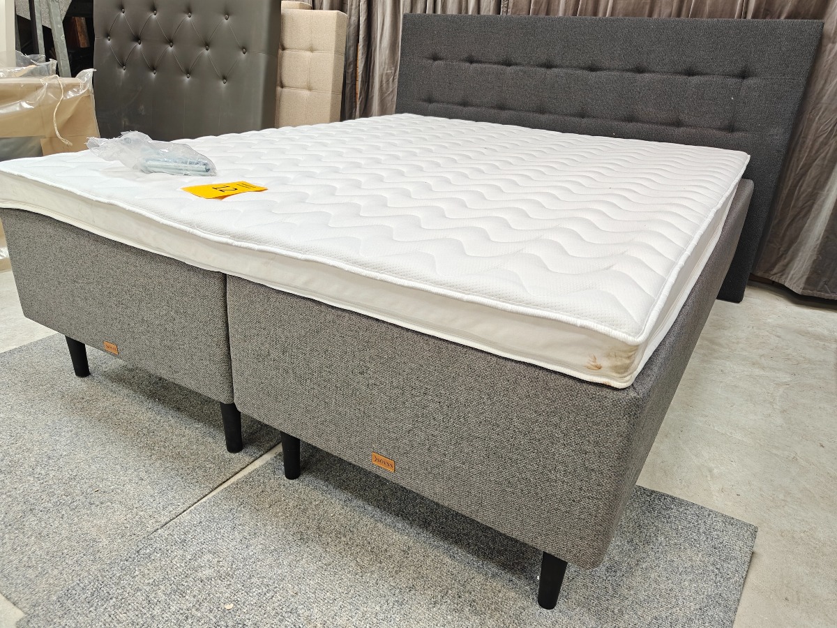 SÖVNN Kontinentalseng - 160x200 - Med gavl og topmadras. Gavlen er 180 cm bred. Udgået model og været brugt som udstillings model. Der må forventes små skrammer og at de kan være beskidte og skal rengøres. Stået på ekstern lager i et stykke tid. Vi anbefaler at komme til eftersyn. Salg for virksomhed.