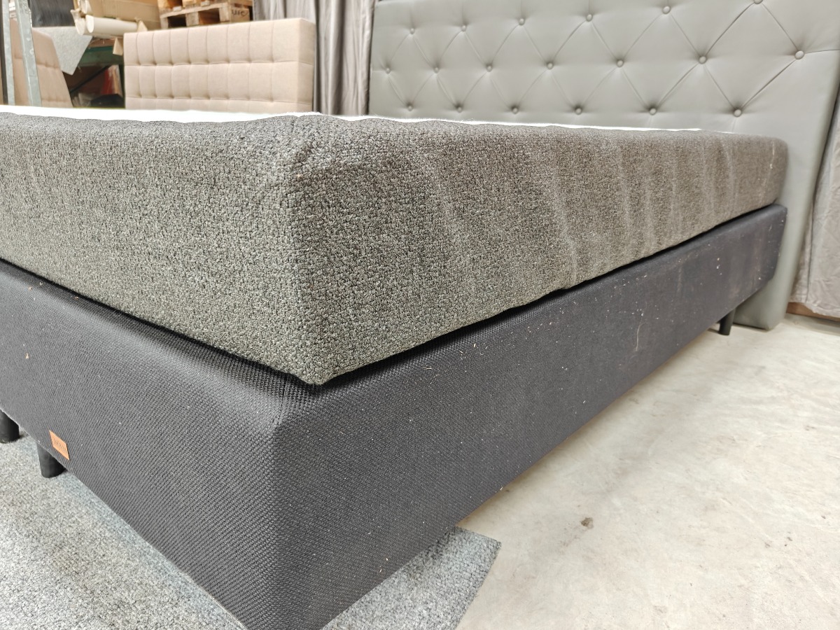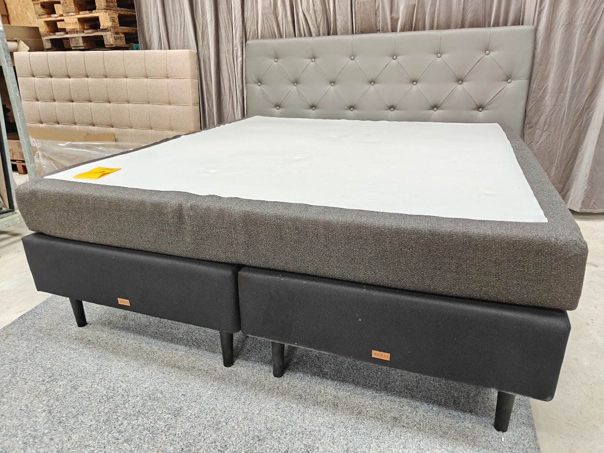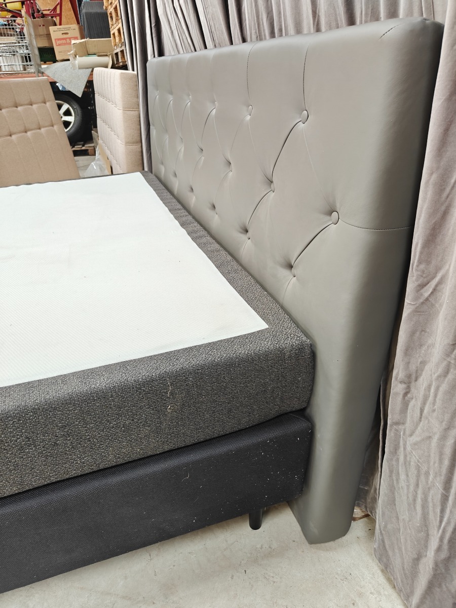 SÖVNN Kontinentalseng - 180x200 - med gavl i læder. Udgået model og været brugt som udstillings model. Der må forventes små skrammer og at de kan være beskidte og skal rengøres. Stået på ekstern lager i et stykke tid. Vi anbefaler at komme til eftersyn. Salg for virksomhed.