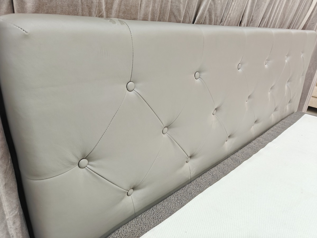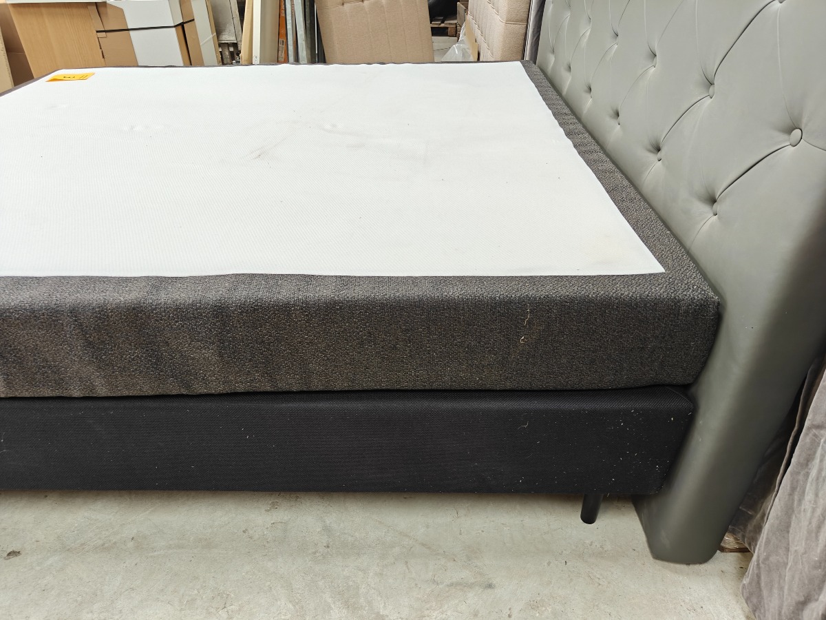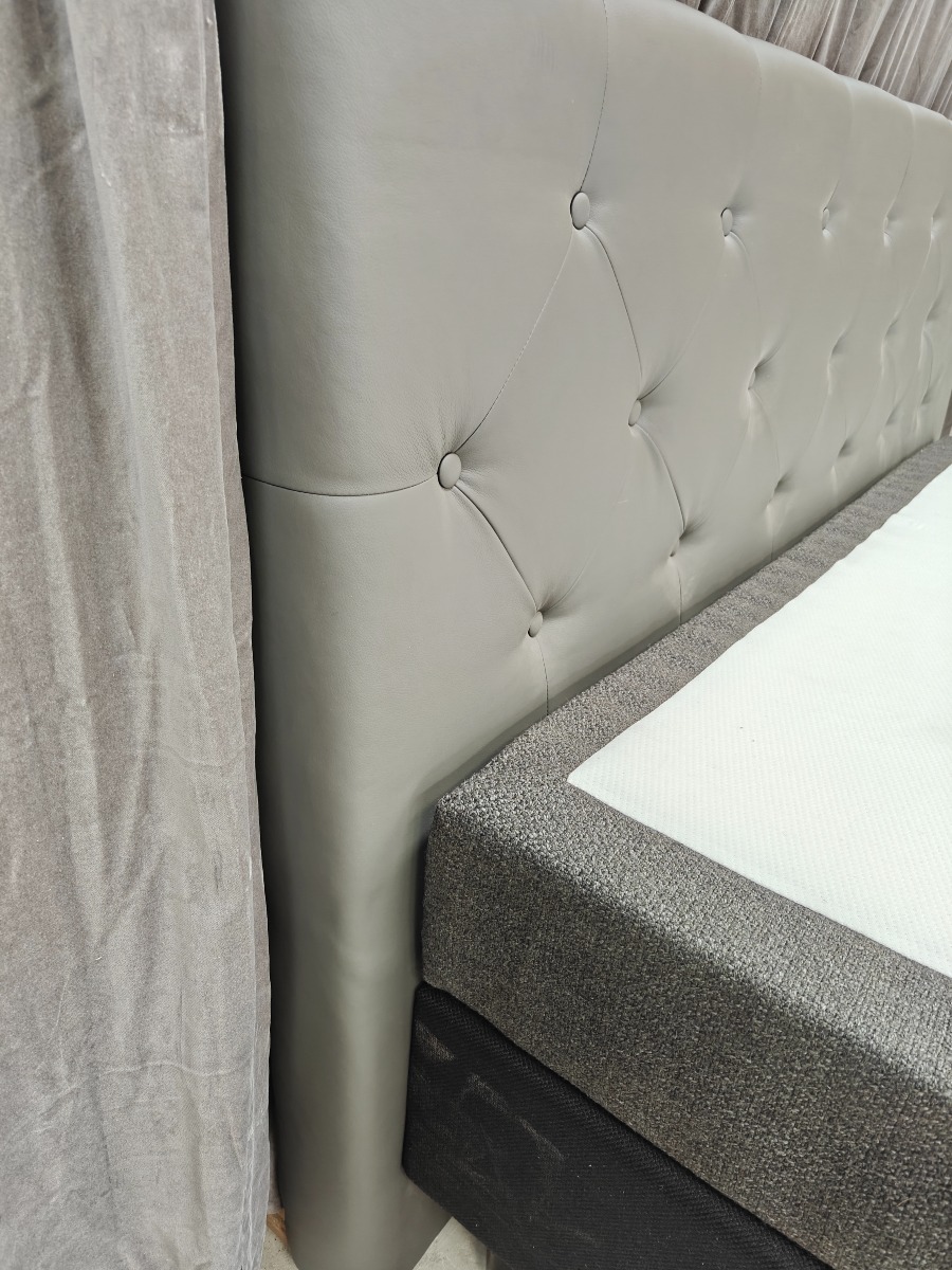 SÖVNN Kontinentalseng - 180x200 - med gavl i læder. Udgået model og været brugt som udstillings model. Der må forventes små skrammer og at de kan være beskidte og skal rengøres. Stået på ekstern lager i et stykke tid. Vi anbefaler at komme til eftersyn. Salg for virksomhed.