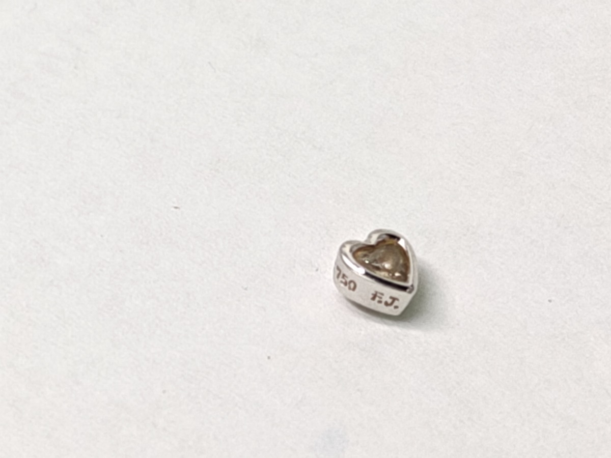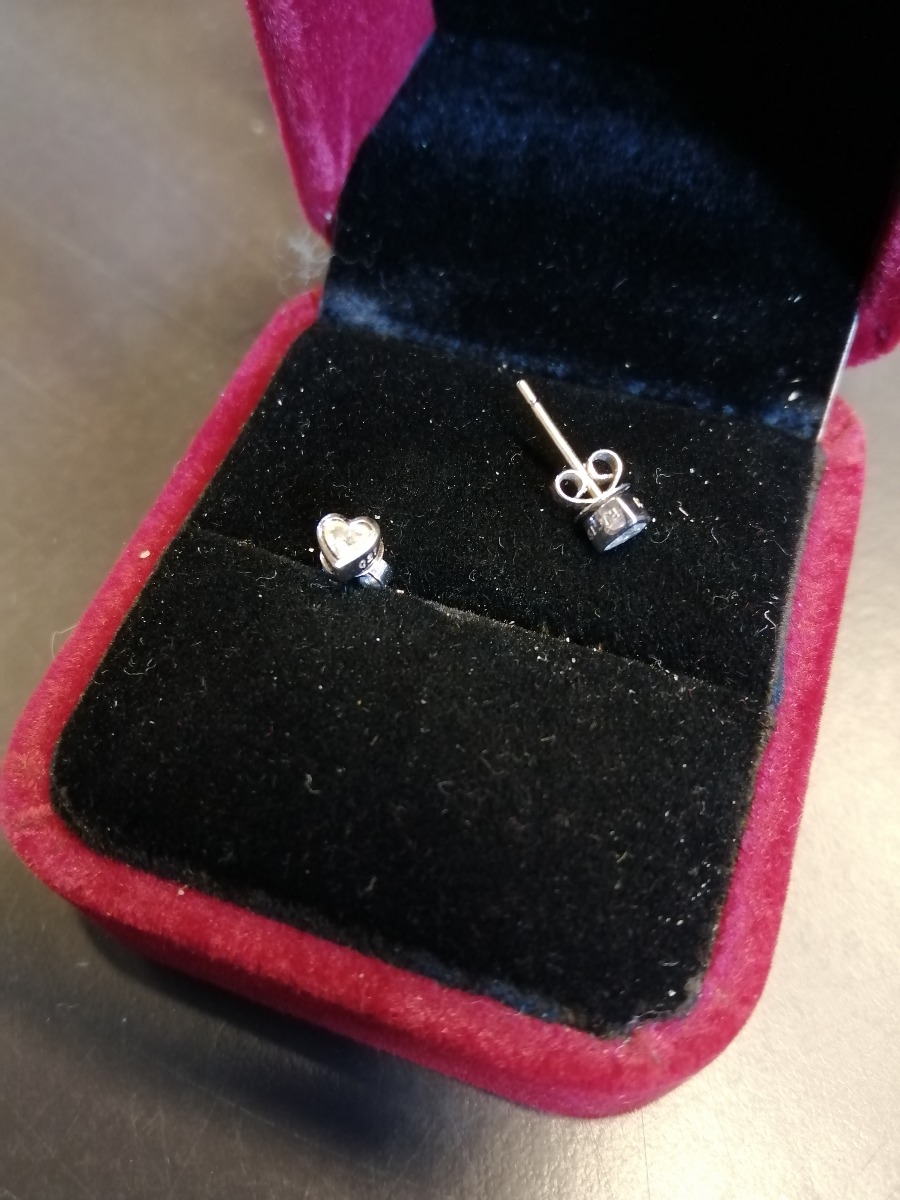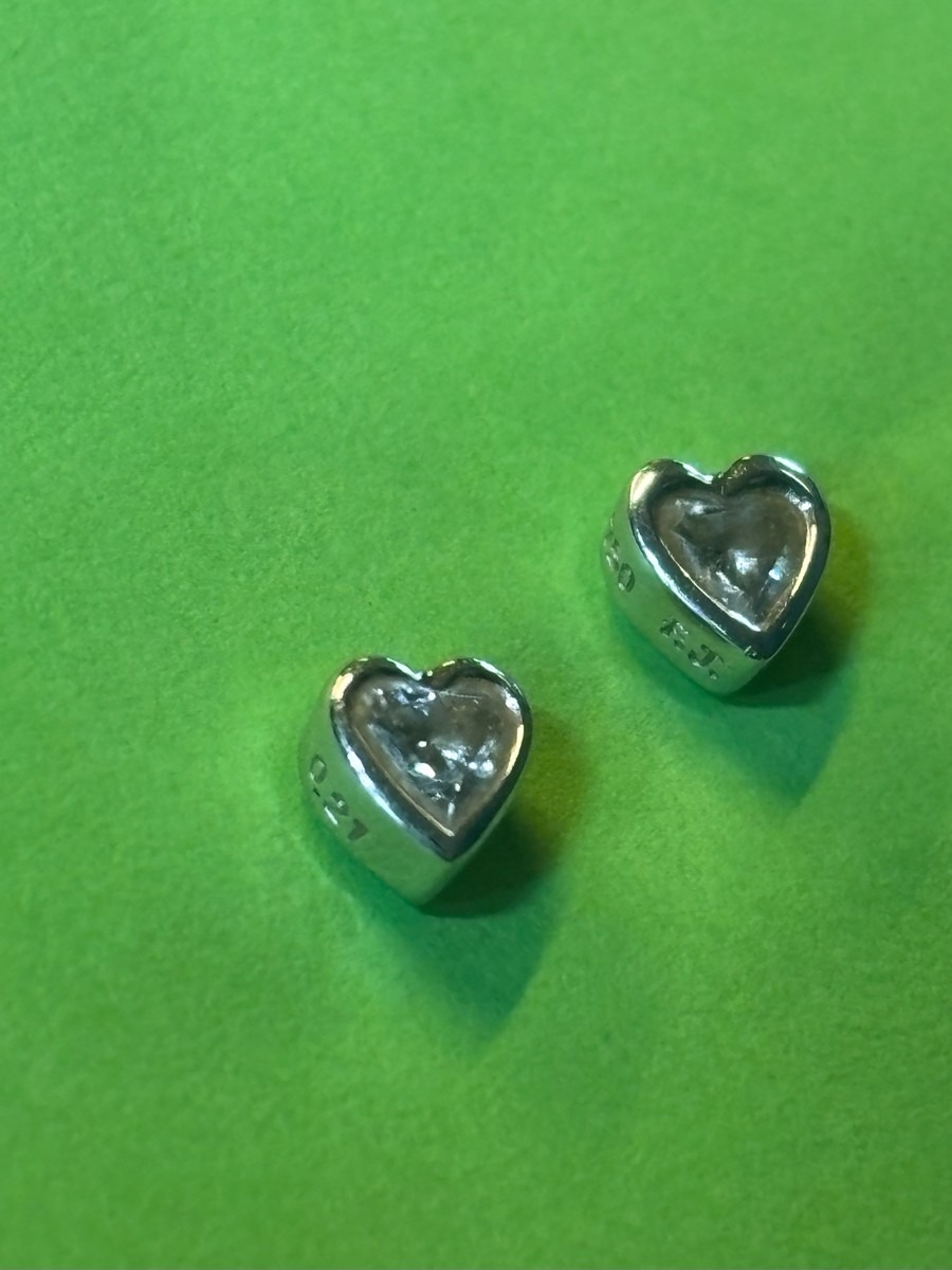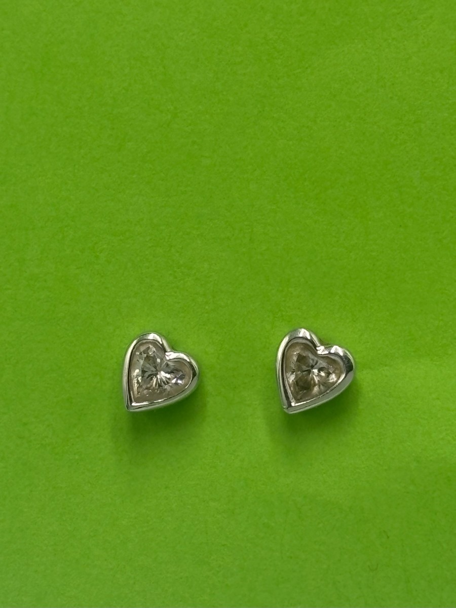 18 karats guld hjerteformede ørestikkere med diamanter. Vægt 1,4 gram. Trænger til rens.
