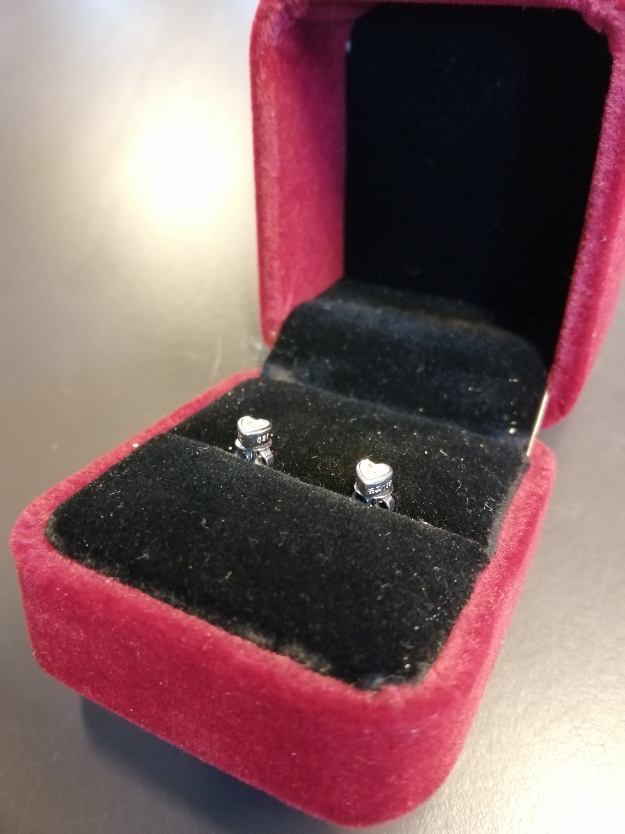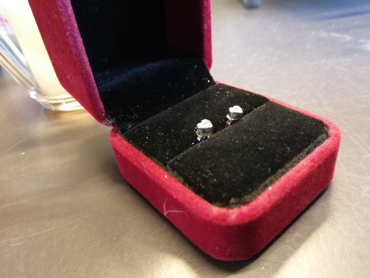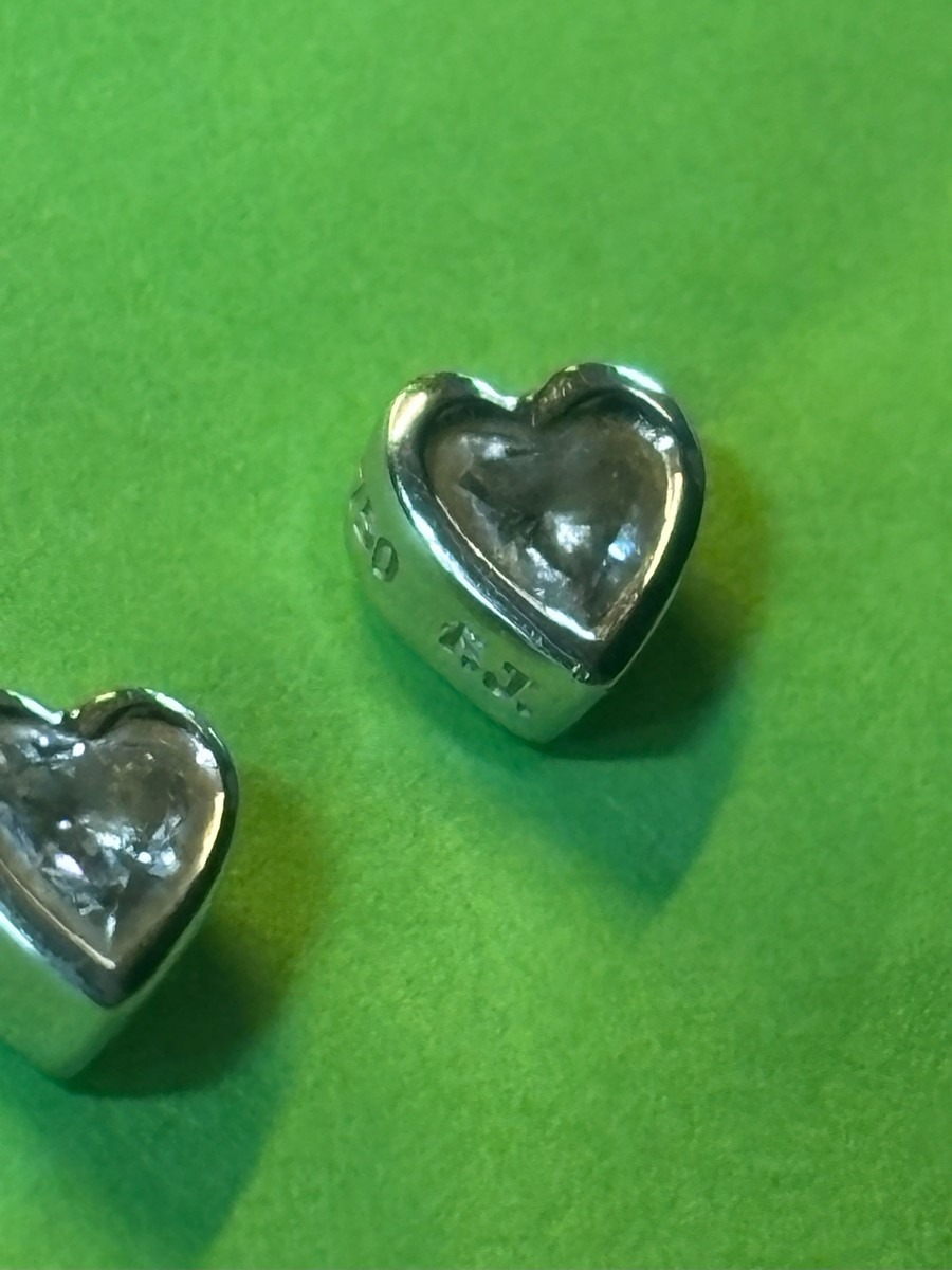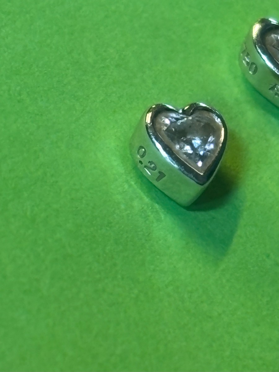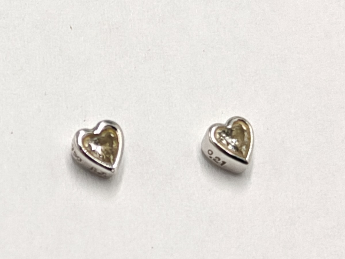 18 karats guld hjerteformede ørestikkere med diamanter. Vægt 1,4 gram. Trænger til rens.
