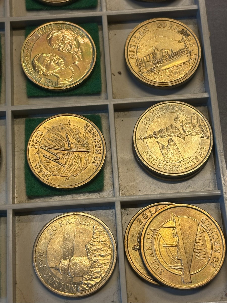 Jubilæum mønter - 32 stk. 10ér kr & 56 stk. 20er kr. Pålydende værdi 1.440,- kr.