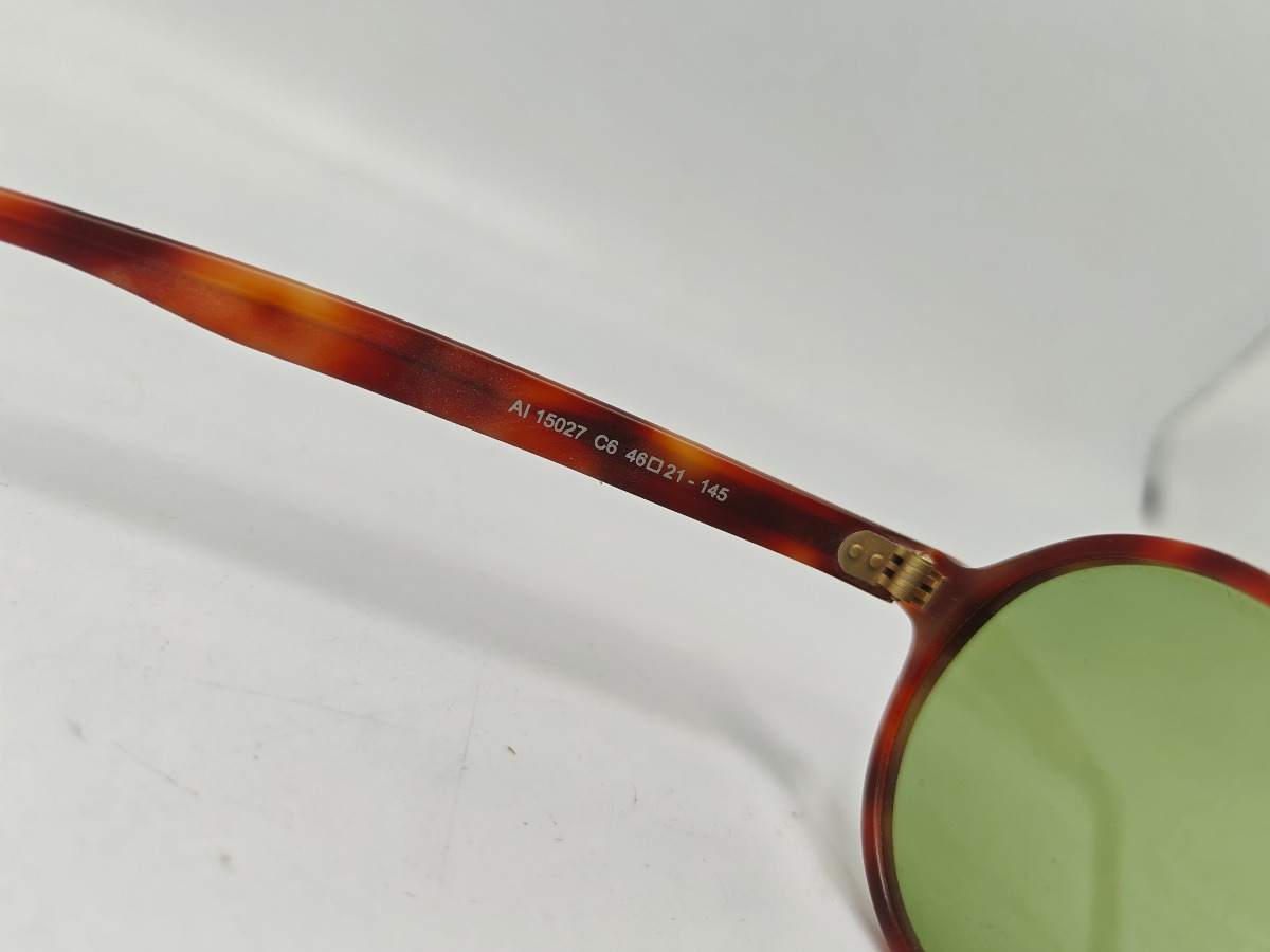 AI 15027 solbriller med skildpaddestel og grønne glas. Brillerne er nye og ubrugte.