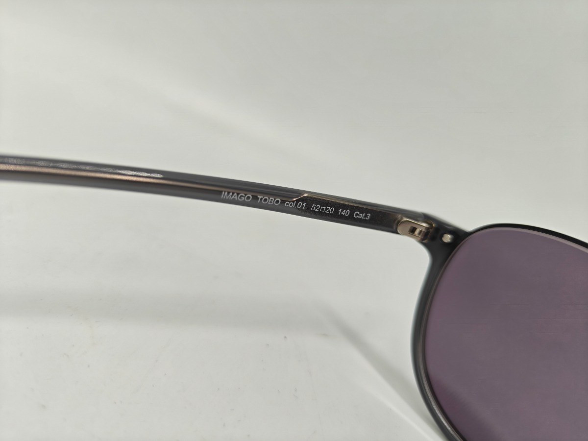 Imago Tobo solbrille med mørkegråt stel og blågrå glas. Brillerne er nye og ubrugte.