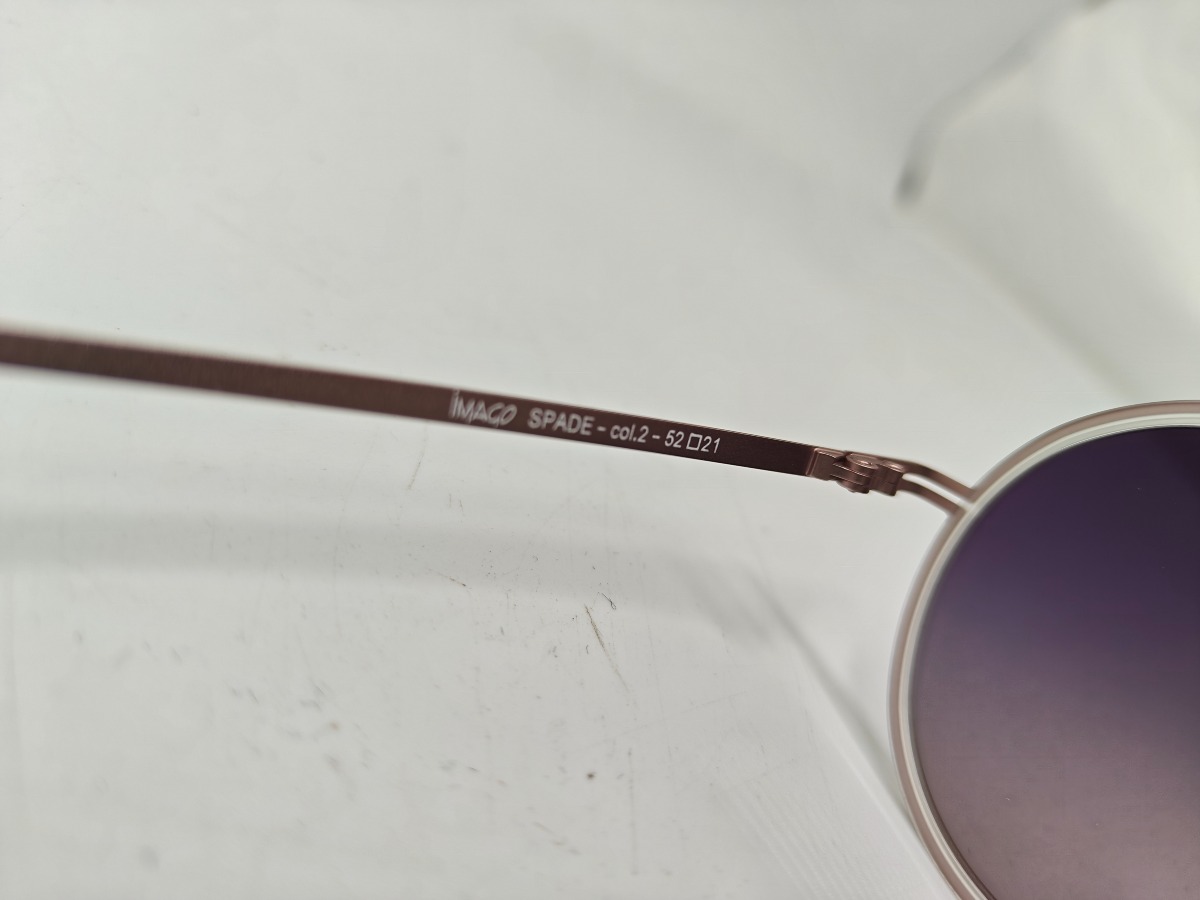 Imago Spade solbriller med titaniumstel og violette glas. Brillerne er nye og ubrugte.