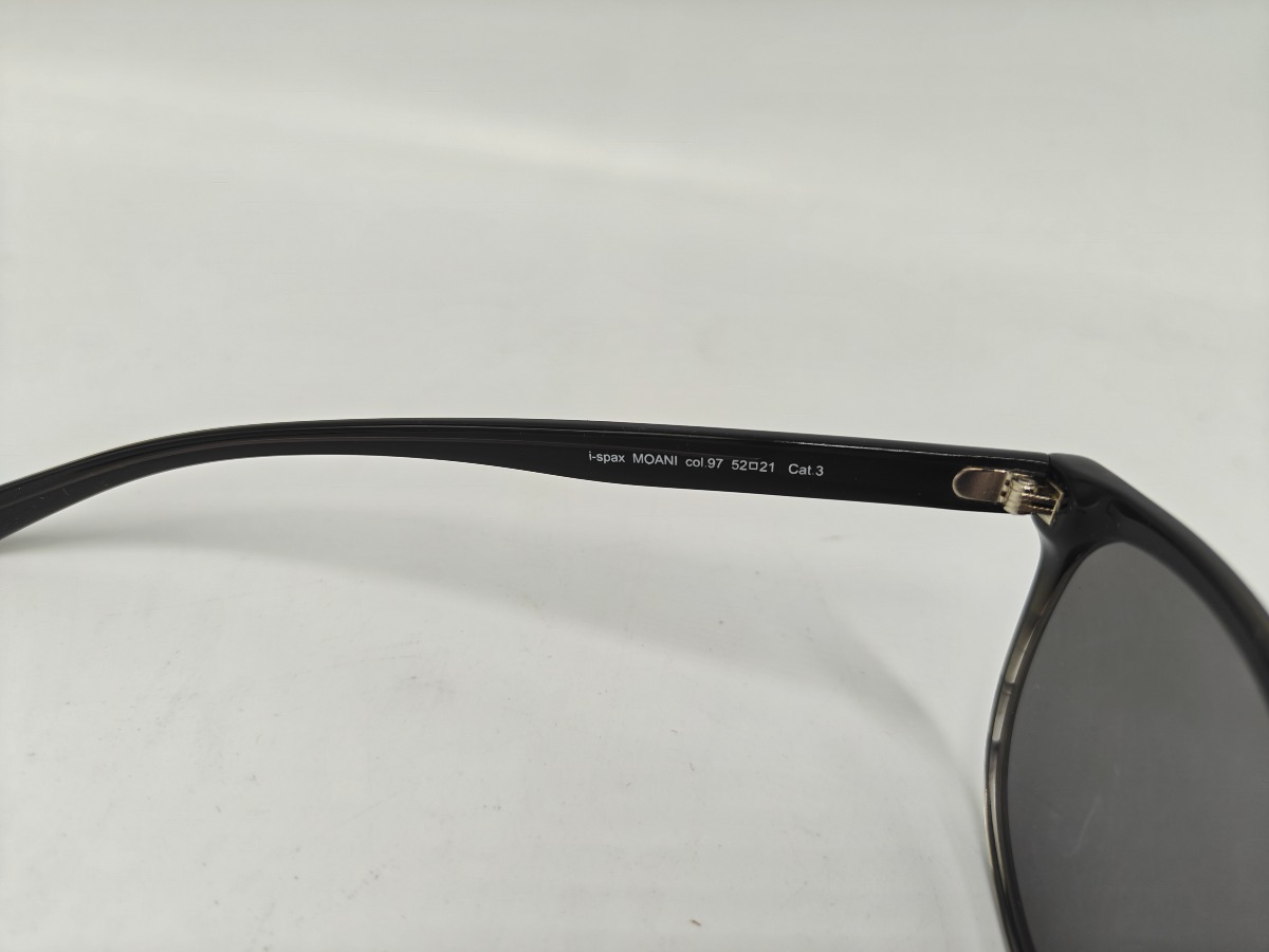 I-Spax Moani solbriller med gråtonet stel med grå glas. Brillerne er nye og ubrugte.