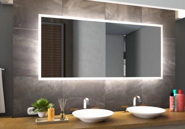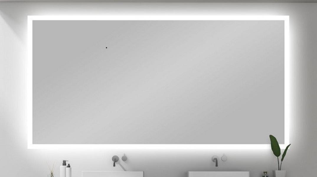 Mie 1 spejl med super flot LED lys ramme, som giver et godt lys. Mål: 200 x 80 cm. IP44 godkendt. Lyset kommer fra en LED strip, som sidder på rammen på bagsiden af spejlet. Skjult ophæng og afstand til væg er 25 mm. Det lyser ud til siden, ind på væggen og ud igennem den yderste kant af spejlt, som er frostet. Spejl tykkelse: 4 mm. Med polerede kanter, så ingen skarpe kanter. Spejlet tilkobles en ekstern kontakt - 230 v. Kelvin 3000. Ubrugt, oprydning fra køkken/bad butik. Original emballage. +MOMS