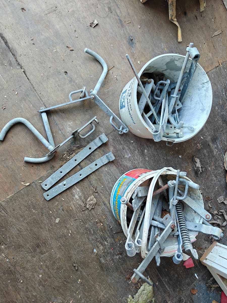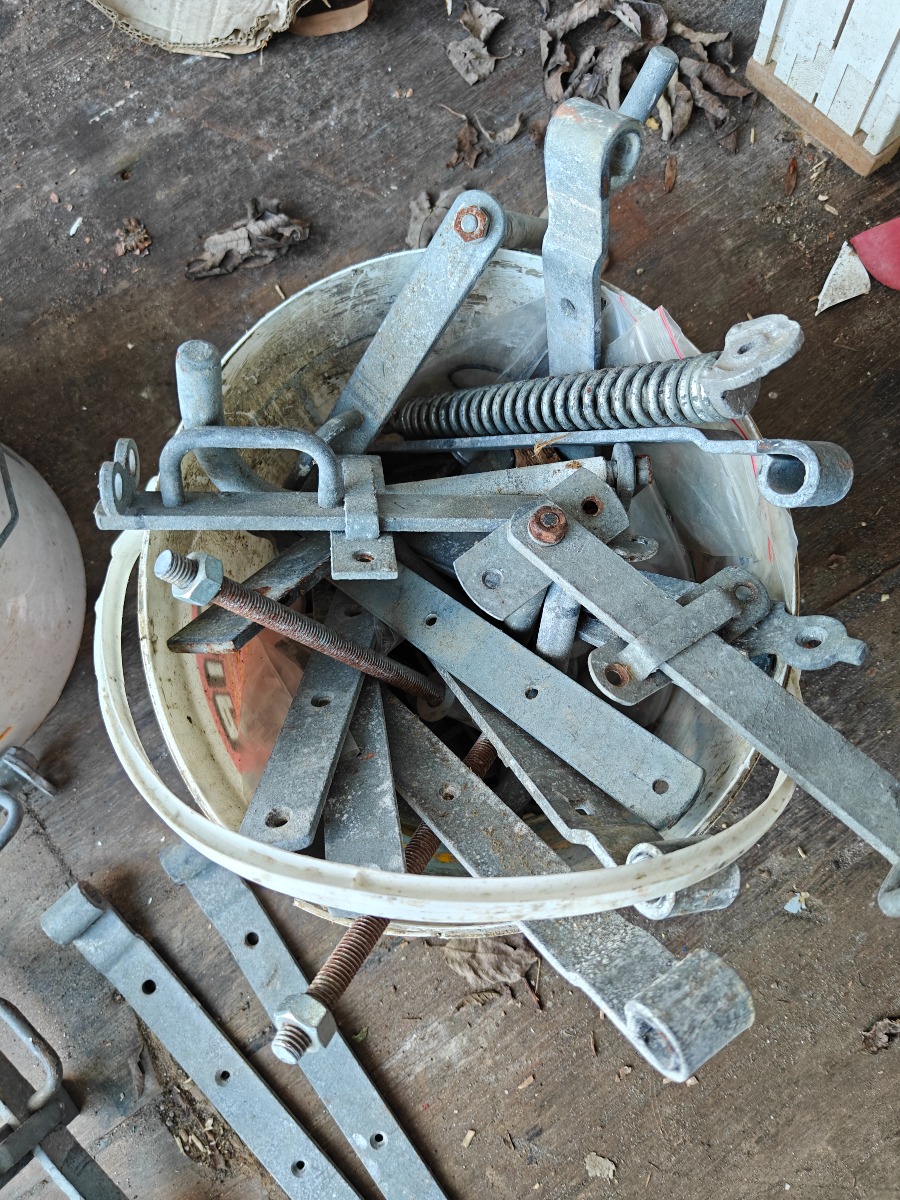 Parti hængsler & dørhåndtag til stald døre + ca 20 12 x 180 mm maskinbolte. salg fra virksomhed