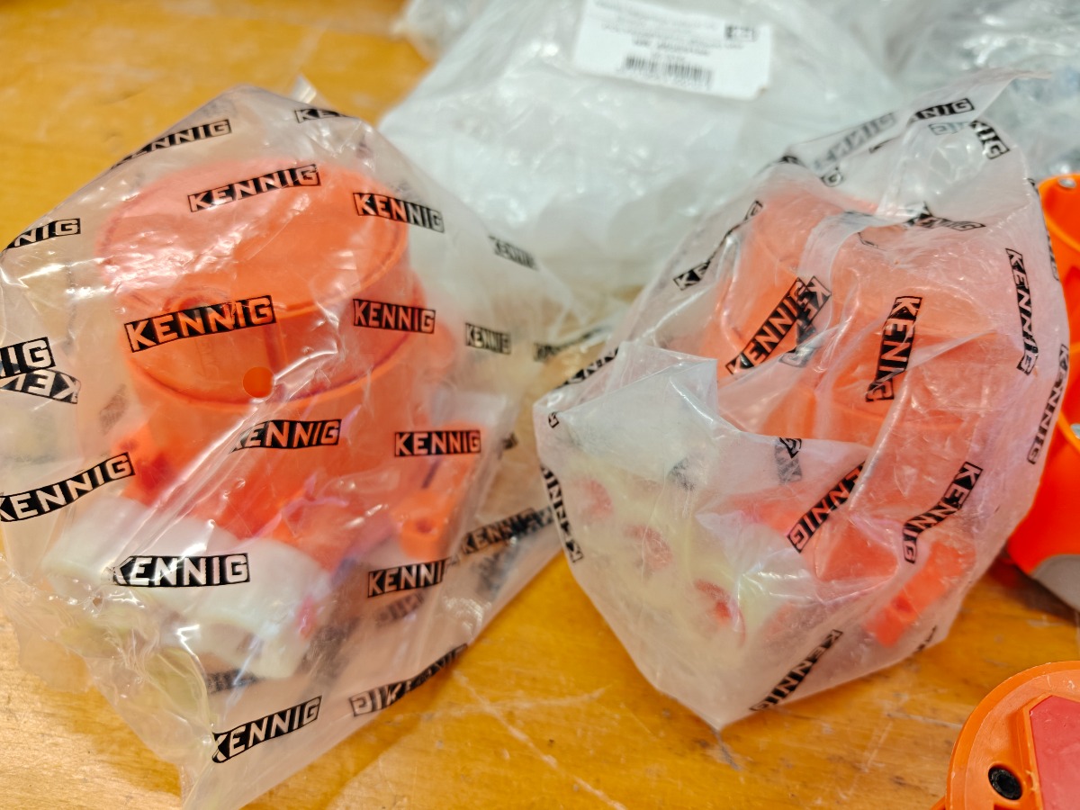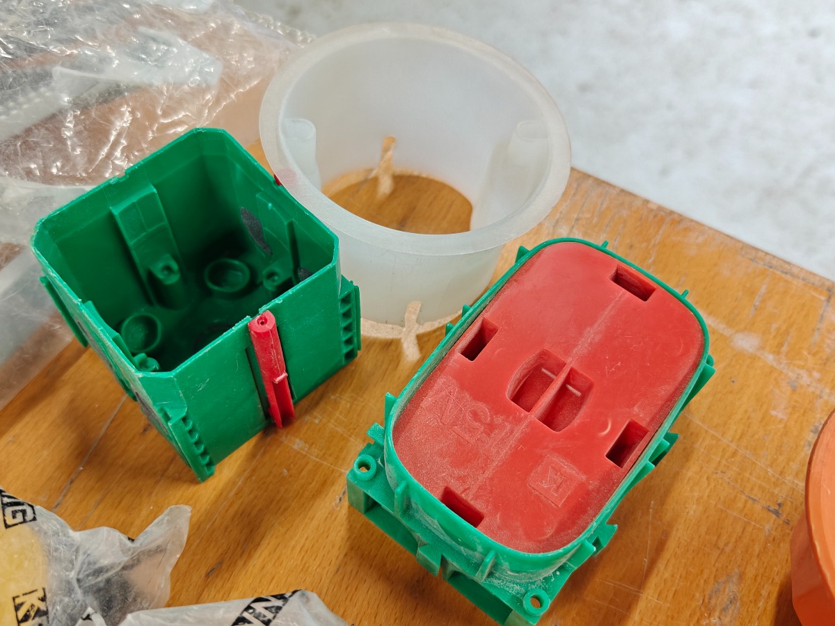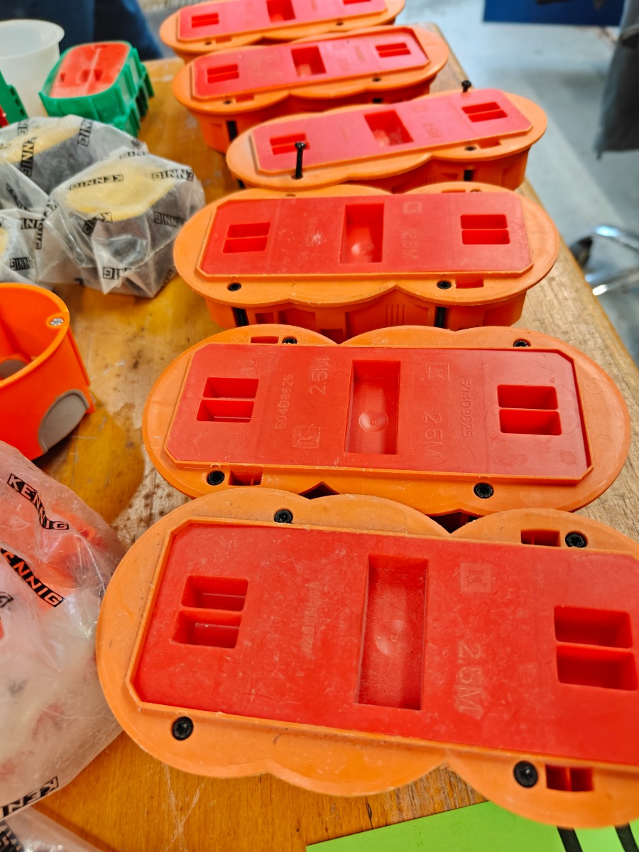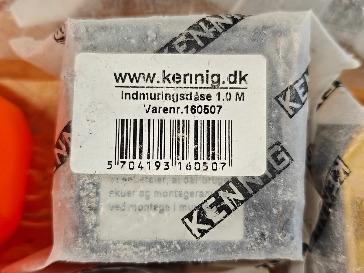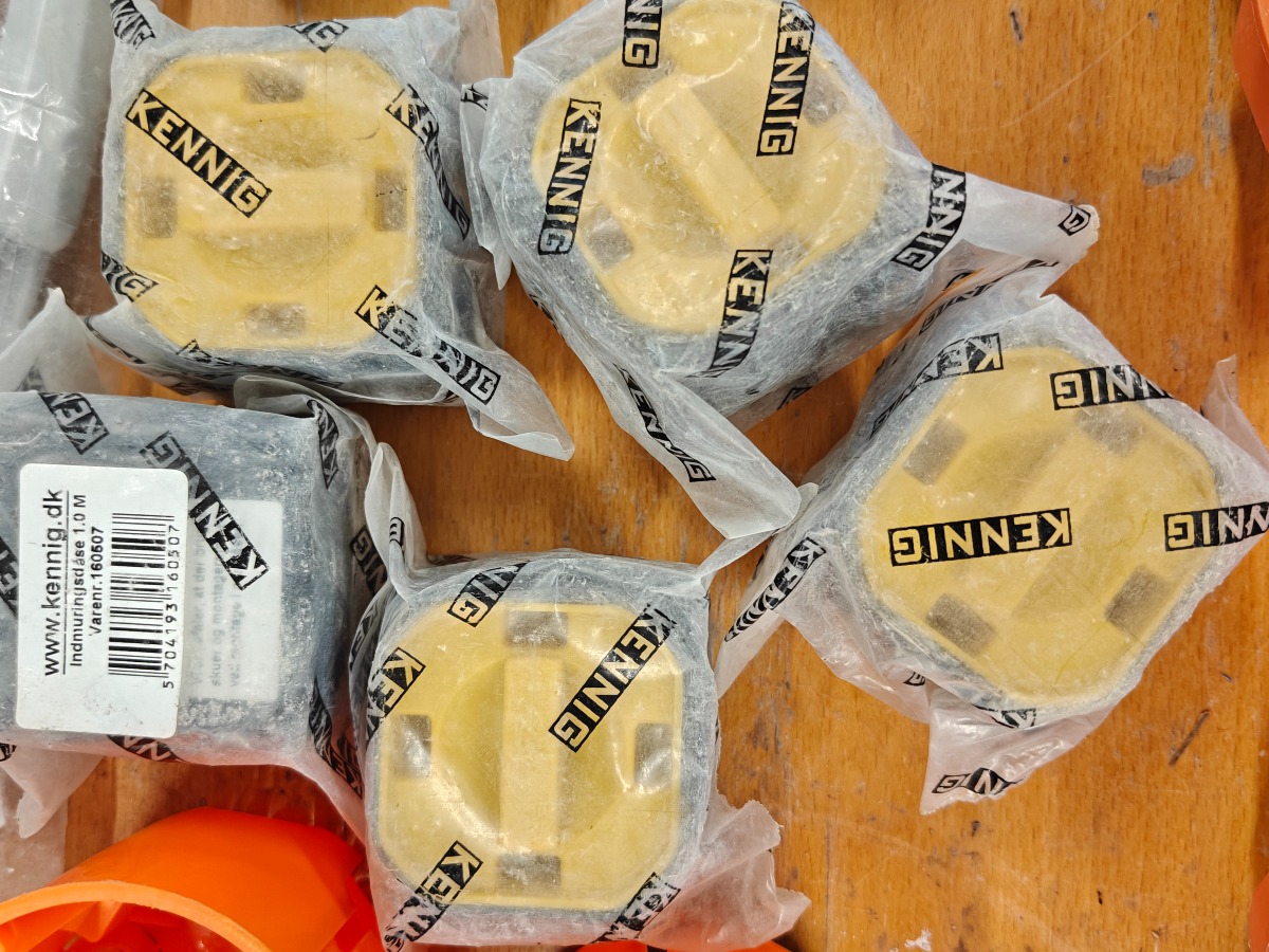 Parti indmuringsdåser og kabelholdere