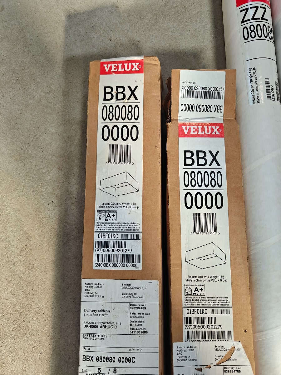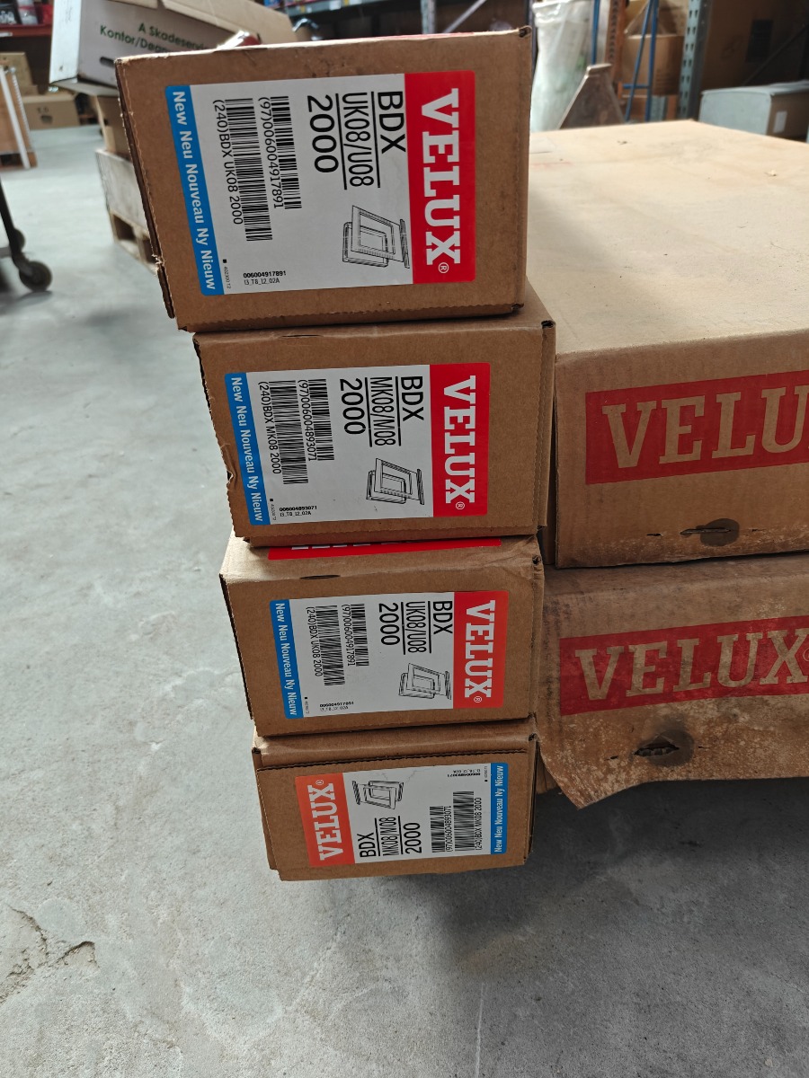 Parti Velux tilbehør 2 stk BBX 08008, 2 stk ZZ 080080, 2 stk EDW 308/1000, 4 stk BDX UK08/u08 2000