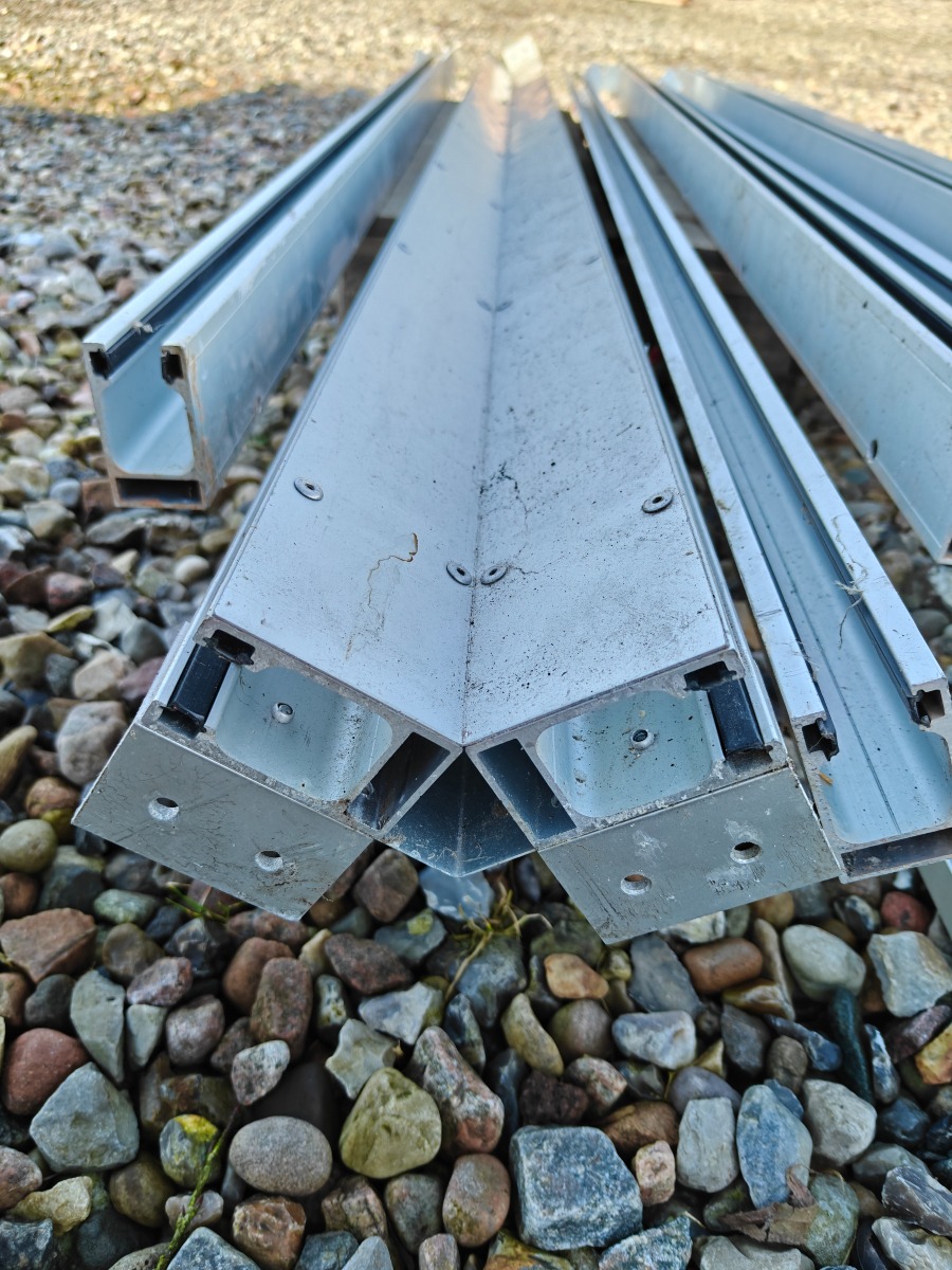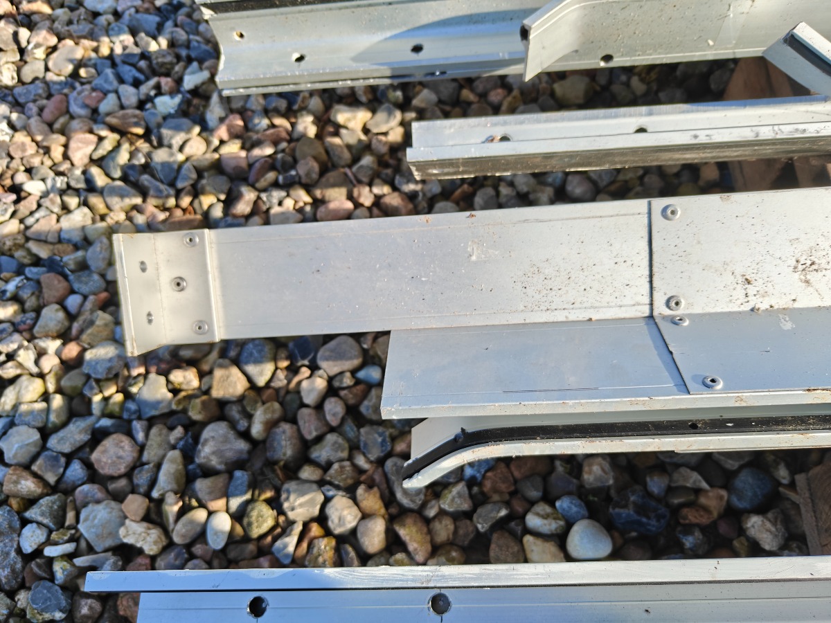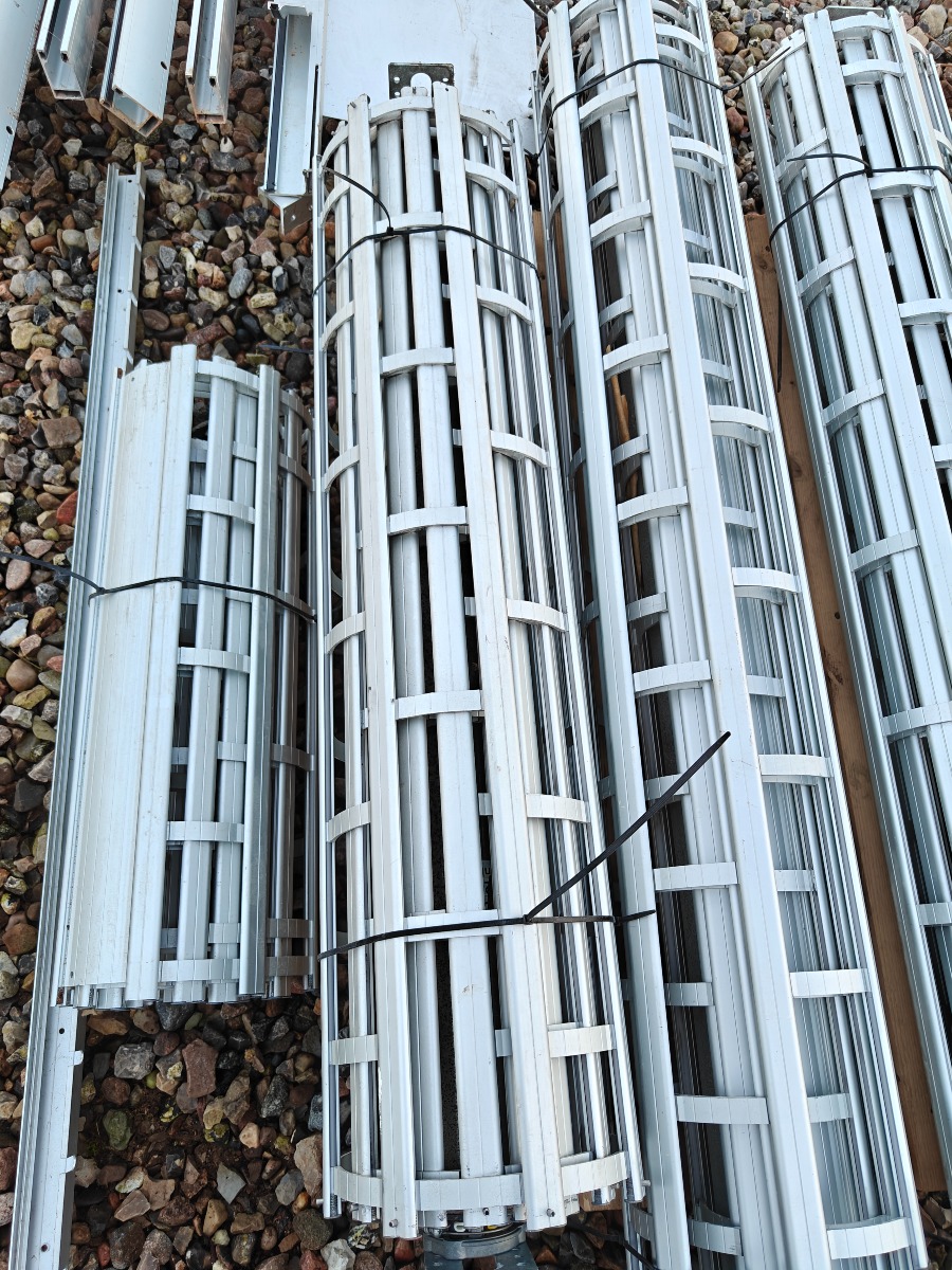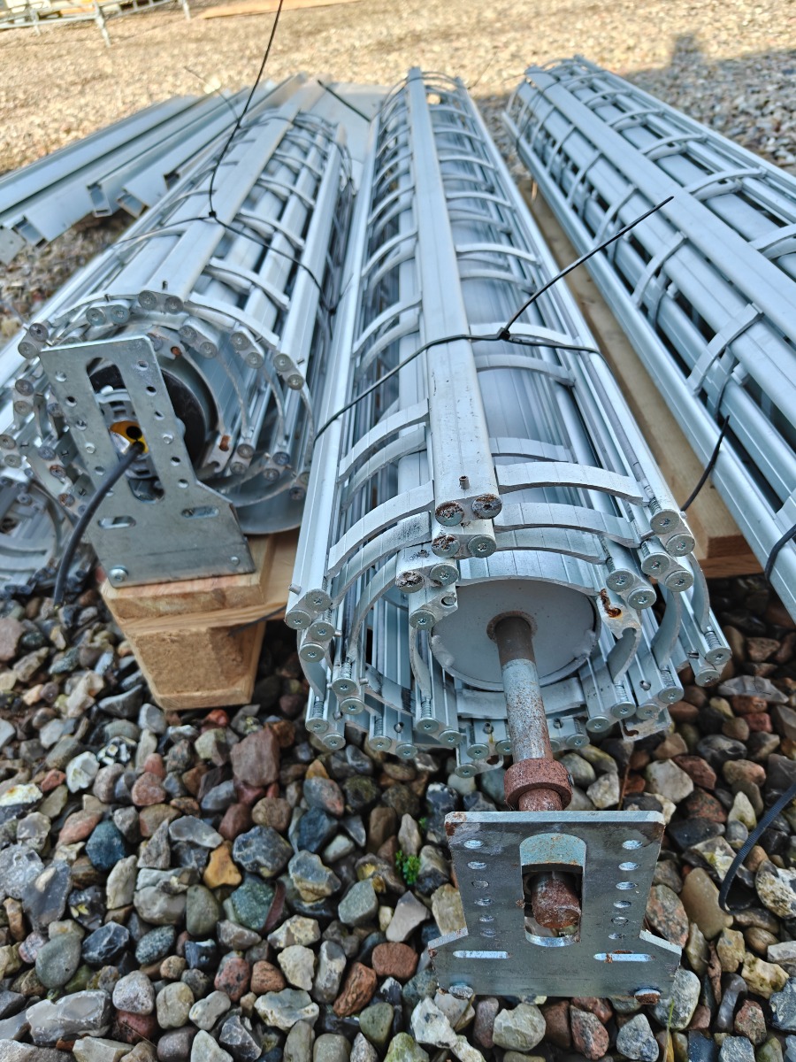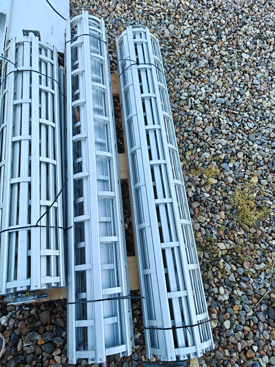 Rullegittersikring fra kronborg sikring 2 stk ruller a` 160 cm i breden  montage bredde er 175 cm 1 rulle a` 125 cm i bredden montage bredde er 140 cm. Div styreskinner ca. 127 cm lange, pæn stand.  Salg fra virksomhed