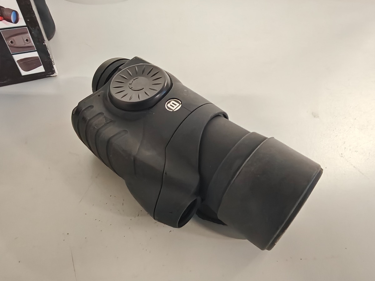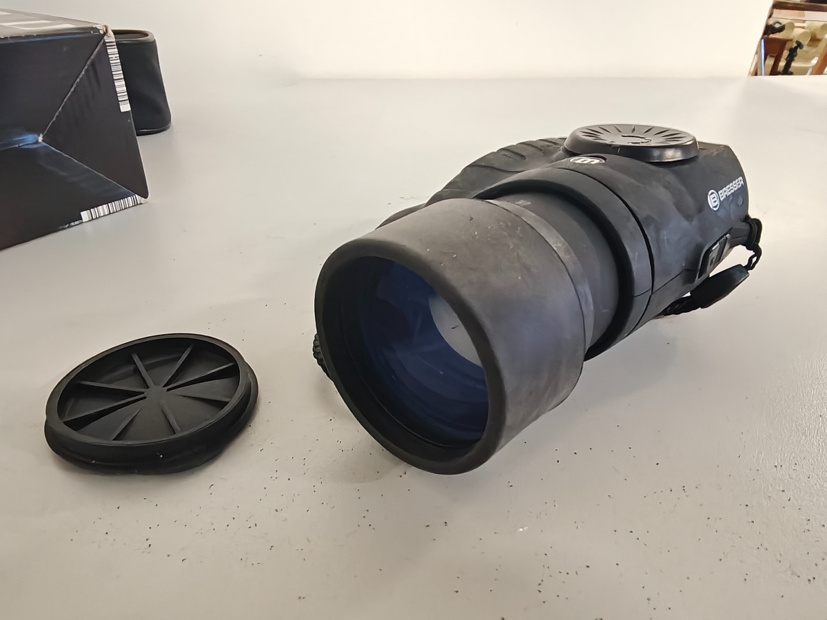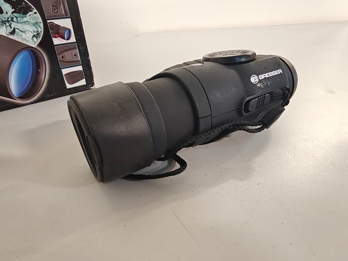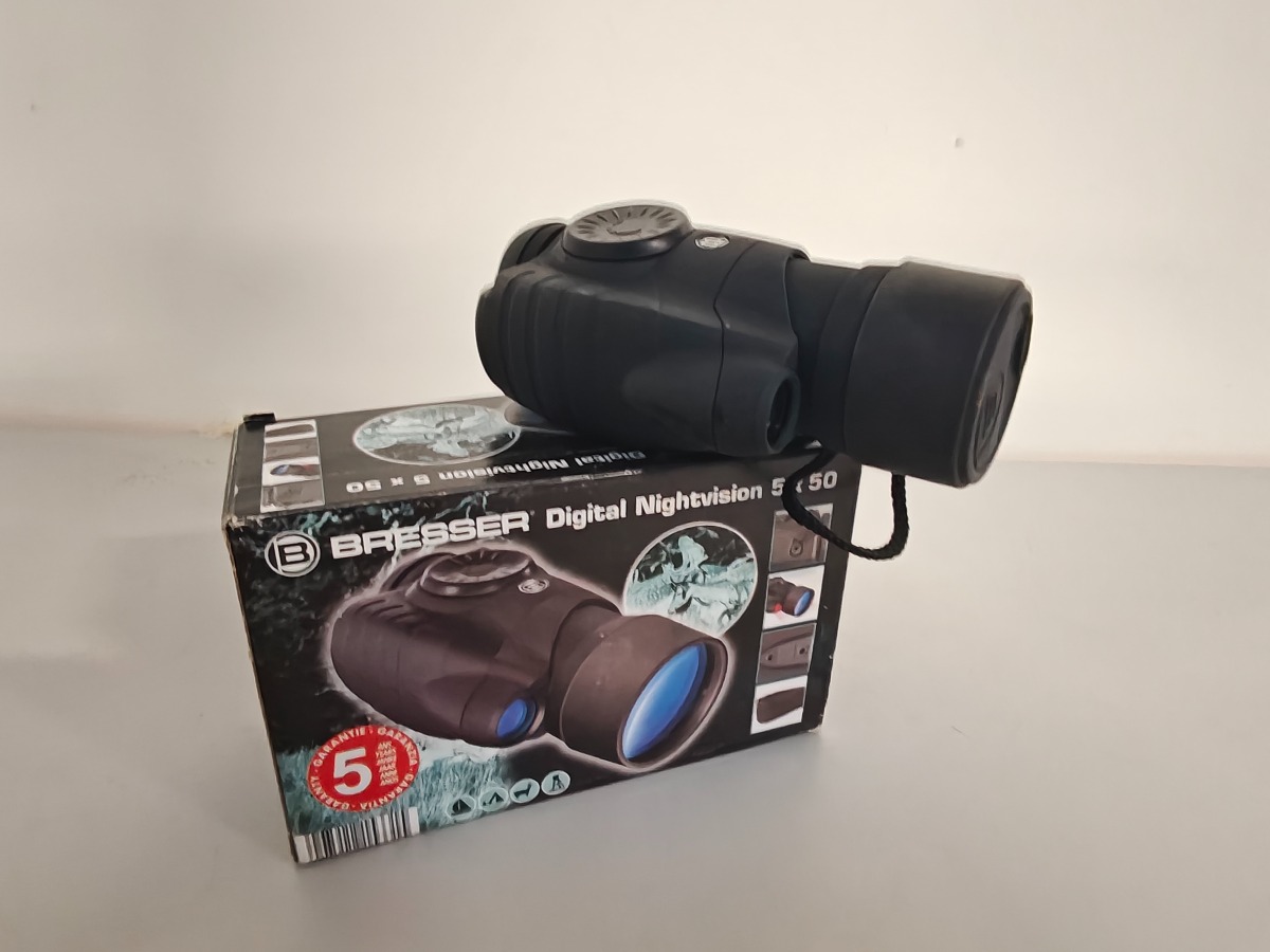 Bresser digital natkikkert 5 x 50. Fremstår med brugsspor. silikone-overflade er fedtet. Lille smule korrosion i batterihus. Vi garanterer ikke for funktionaliteten.