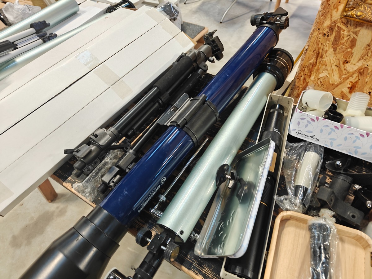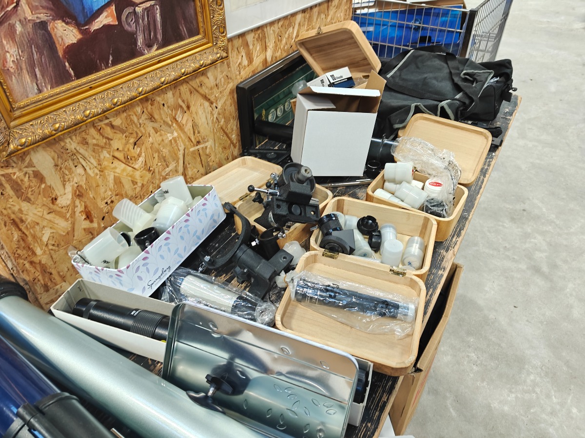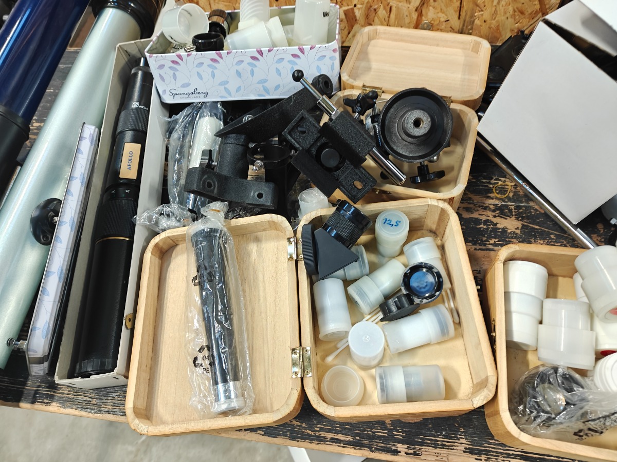 Reservedele til teleskoper. Teleskopdele, okularer stativdele m.m. Mange dele.