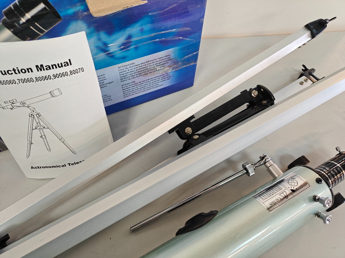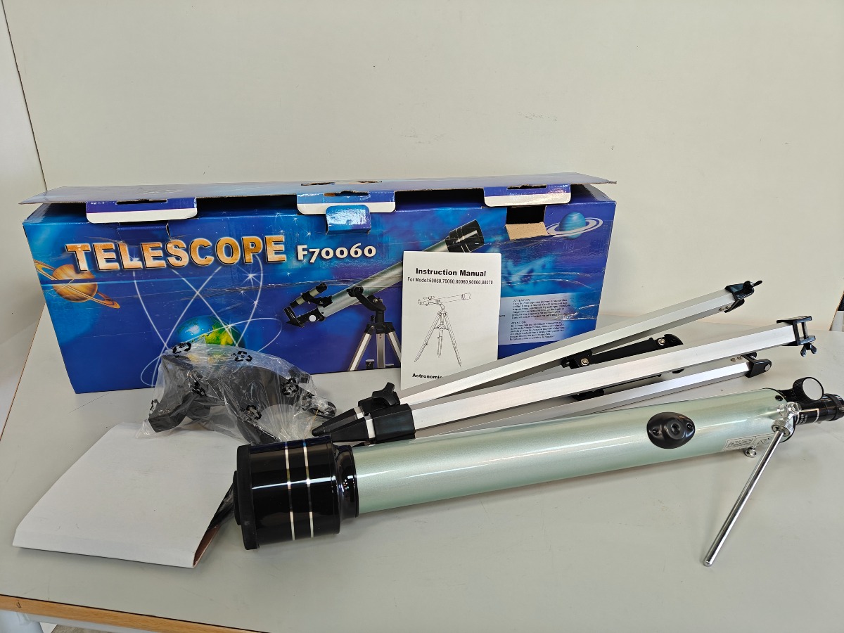 Teleskop 700/60 kun derlvis samlet. Umiddelbart funktionsdueligt, men vi garanterer ikke for mangler og funktionaliteten.