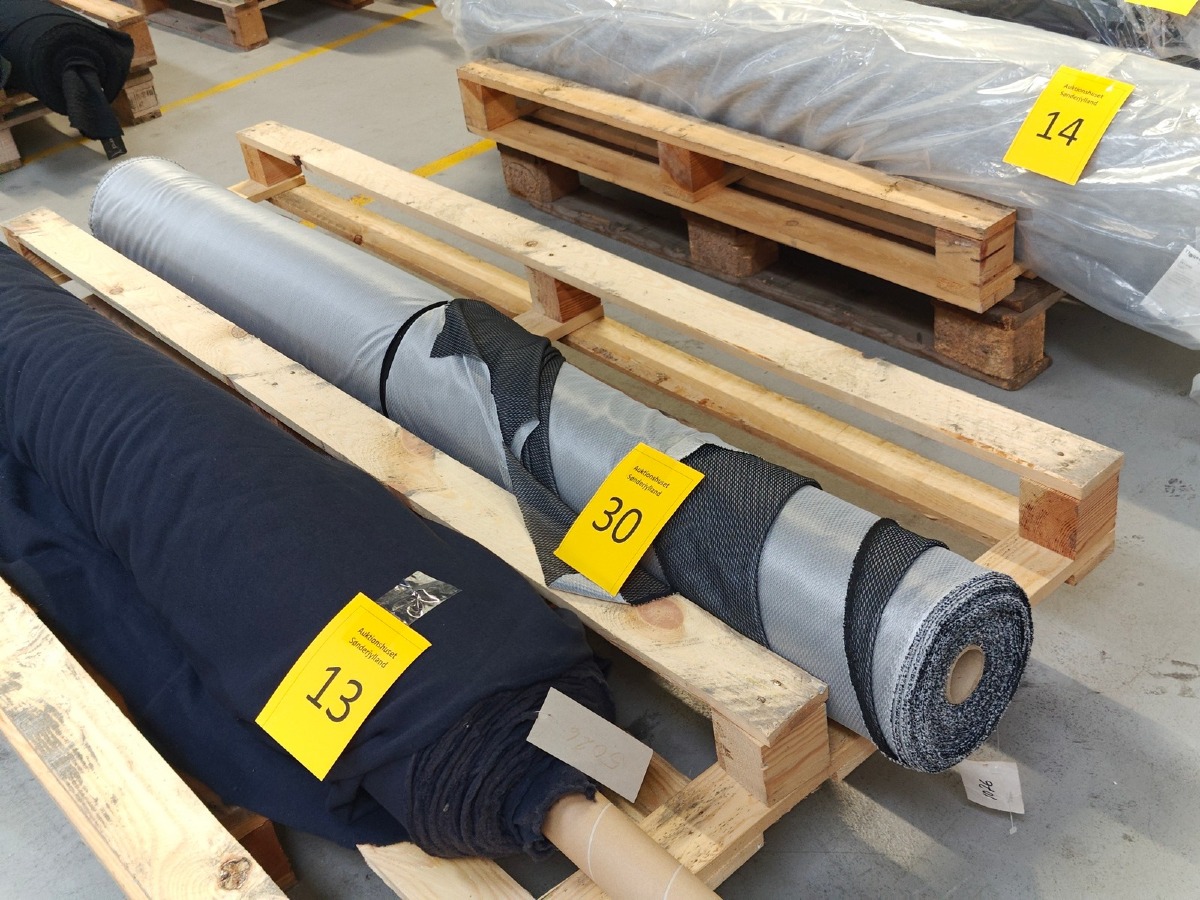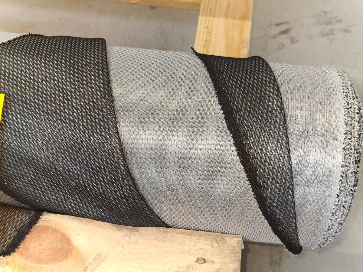 1 rl. Stof: Farve: Grå/sort. Mål: L: Ca 50 m. B: 170 cm.