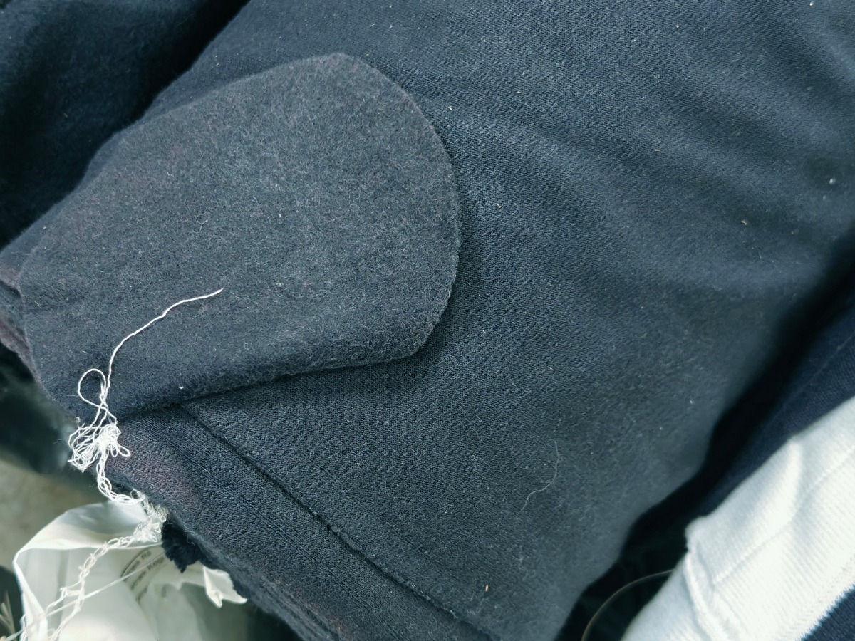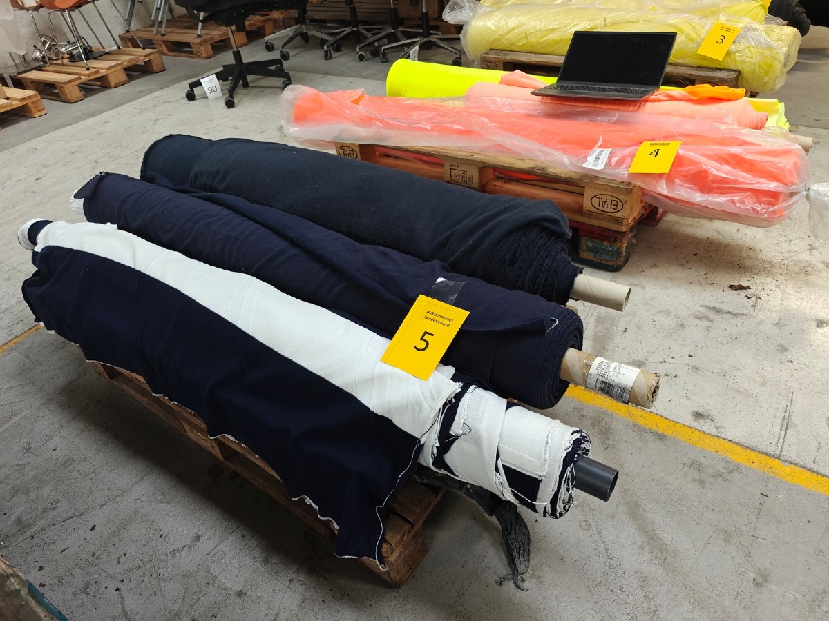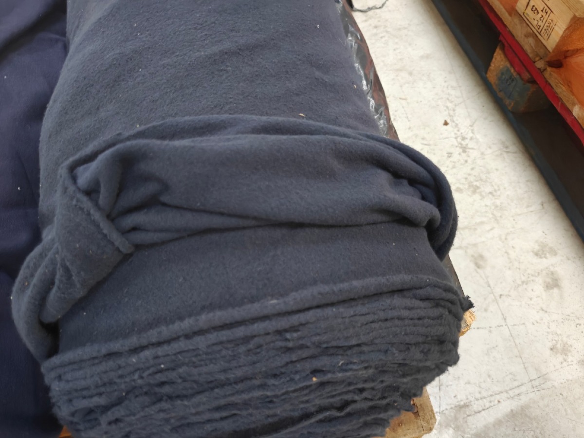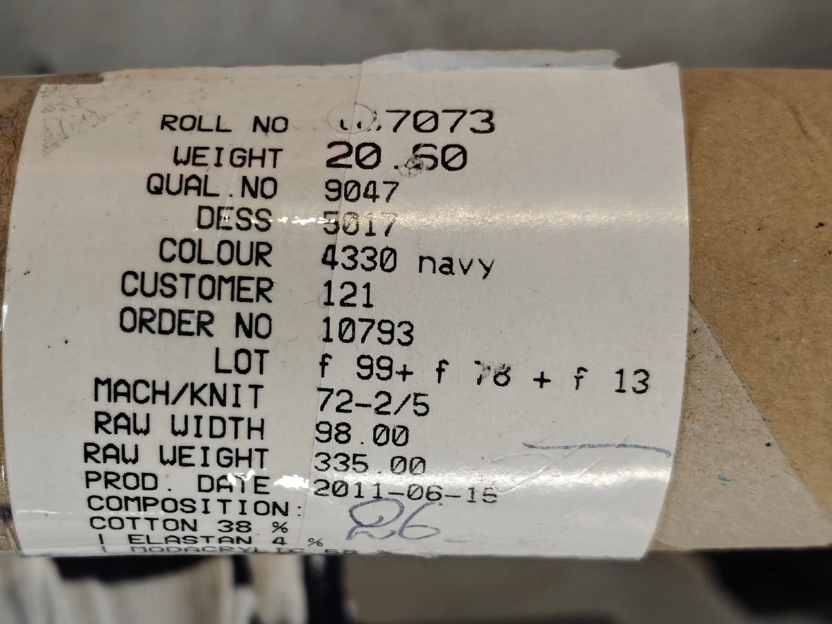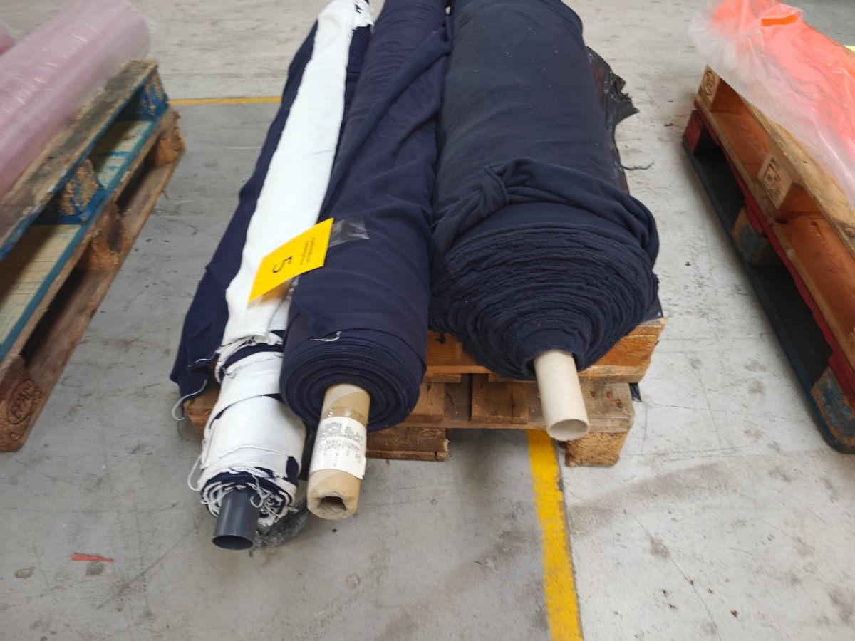 3 rl. Stof: 1 stk. Navy/hvid strib & 2 rl navy. Mål: 1 rl (stribet): L: ukendt. B: 135 cm. 1 rl (navy): L: ukendt. B: 125 cm. 1 rl (navy): L: ukendt. B: 145 cm.