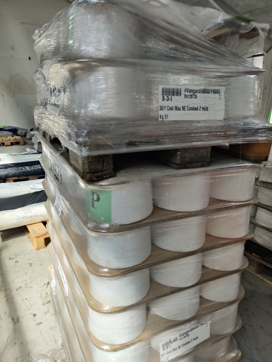Ca. 115 stk. ruller med hvid tråd. Ubrugt, fra virksomhed.