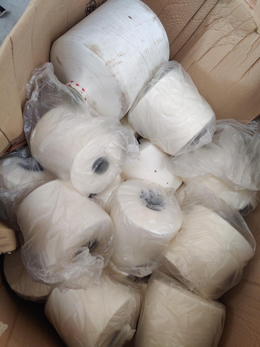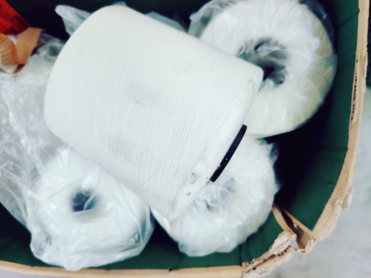 Parti ruller med hvid tråd. Ubrugt, fra virksomhed. hed.