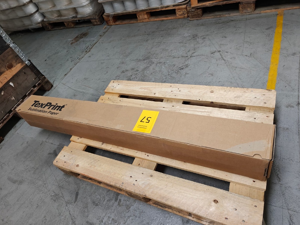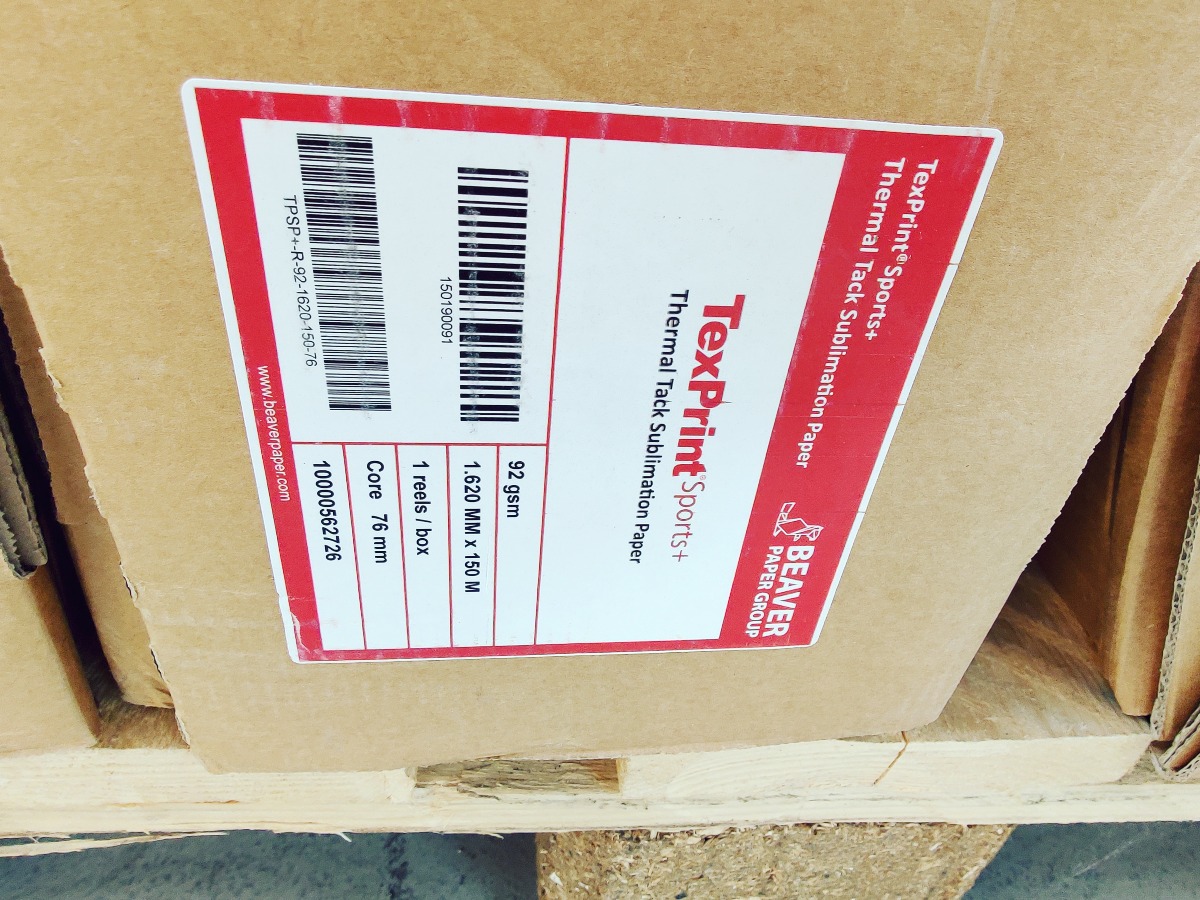 Rulle TexPrint Sports sublimeringspapir, som bruges til at overføre et design til et materiale ved hjælp af varme og tryk- Det er designet til tryk på sportstøj og andre bløde materialer. Papiret har en speciel coating, der gør det velegnet til aktive beklædningsgenstande og sikrer, at trykket forbliver skarpt og holdbart selv under pres og ved vask. Mål: 1.620 mm x 150 mm. Ubrugt.