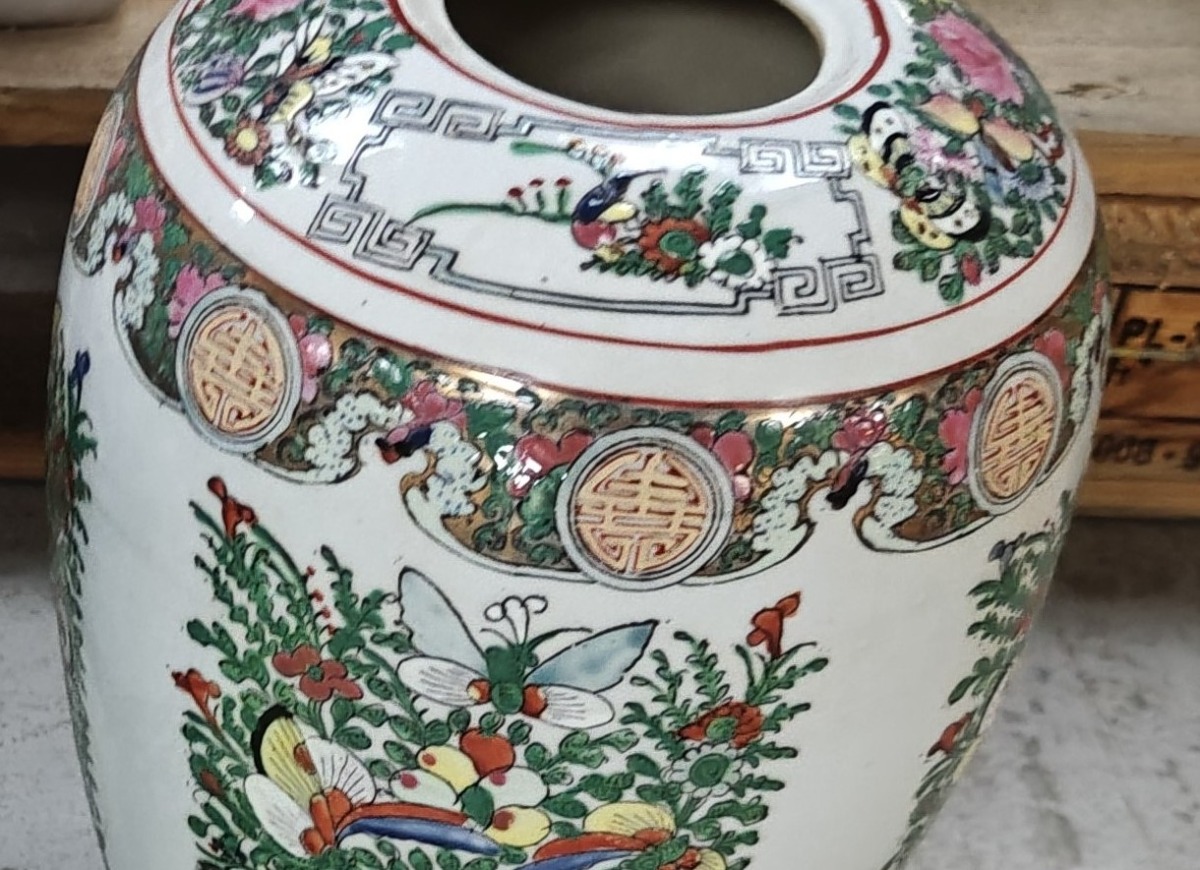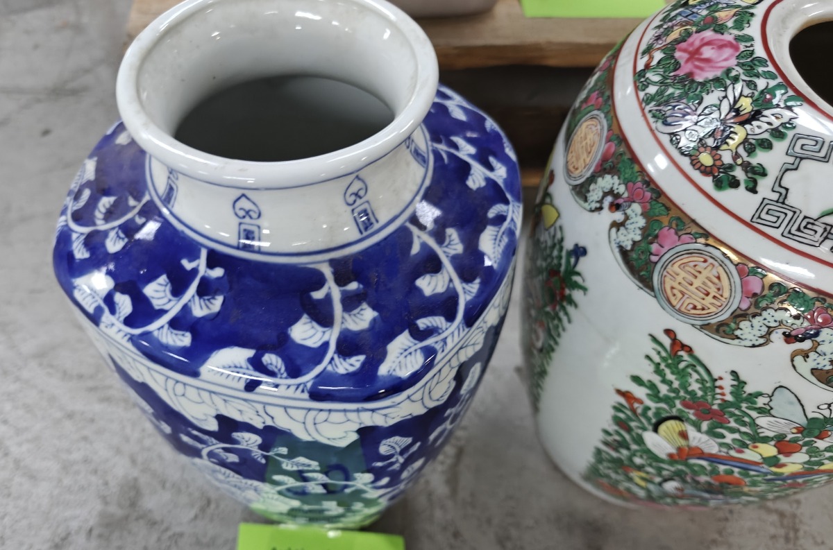 2 Kinesiske vaser. Håndmalede. H: ca 32 cm. Oplyst datering fra første halvdel af 1900-tallet.