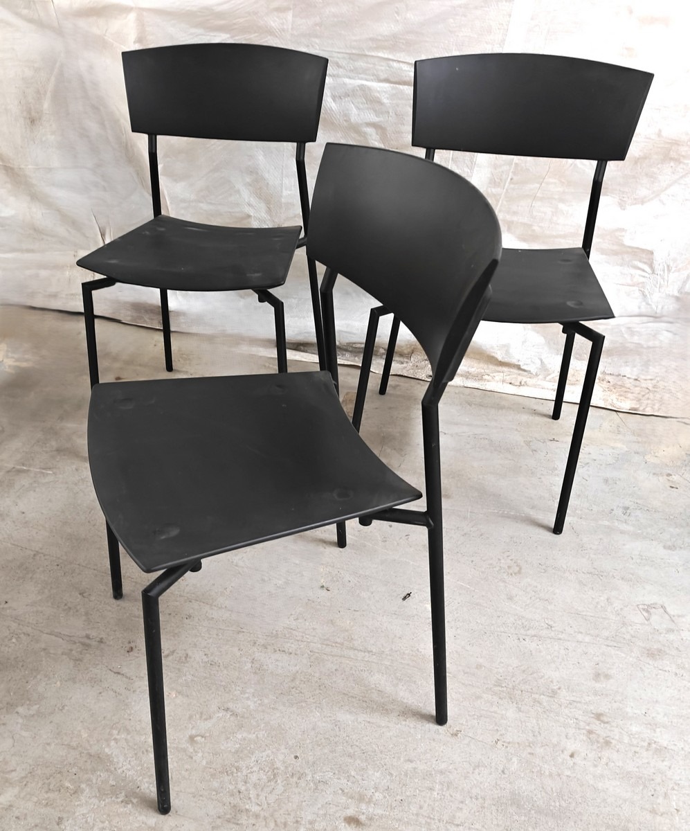 3 Møde-/kantinestole. Mrk: Randers + Radius. Sorte