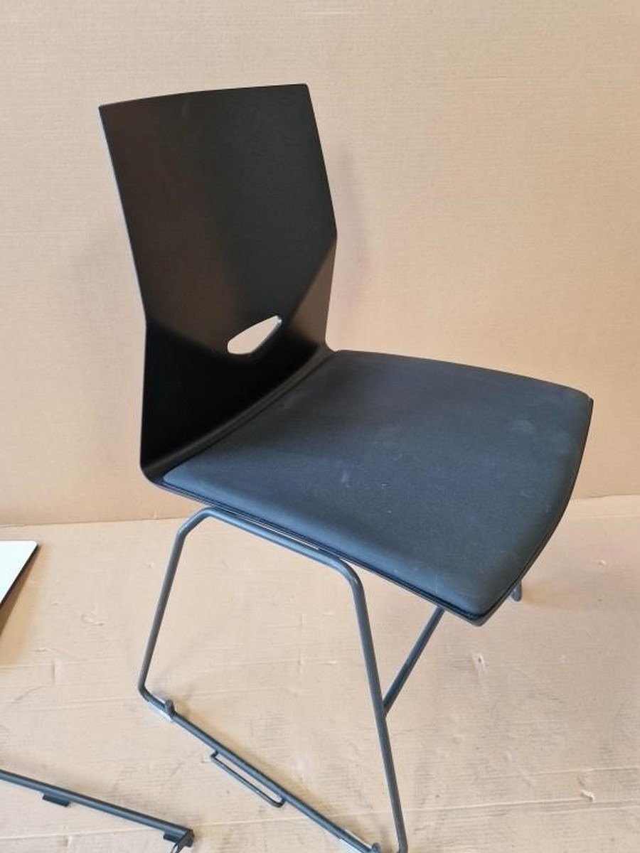 5 Seminarstole m/aftagelig skriveplade. Mrk: Four Design. Design: Strand+Hvass. Ergonomisk ryg i V-form. Kan sættes samme på række. Stabélbare. Brugte..