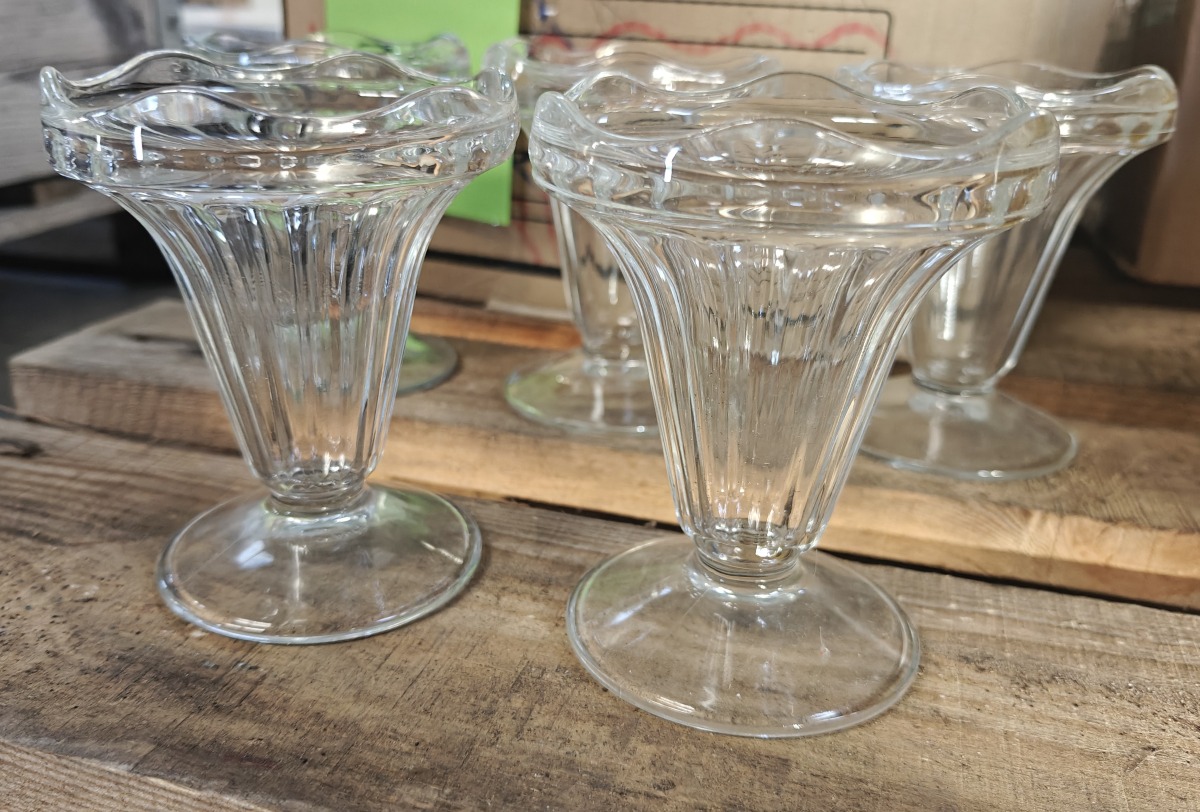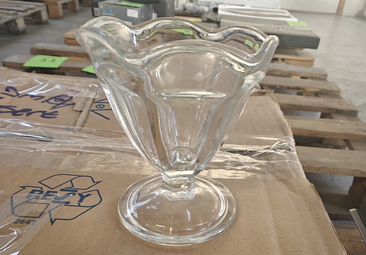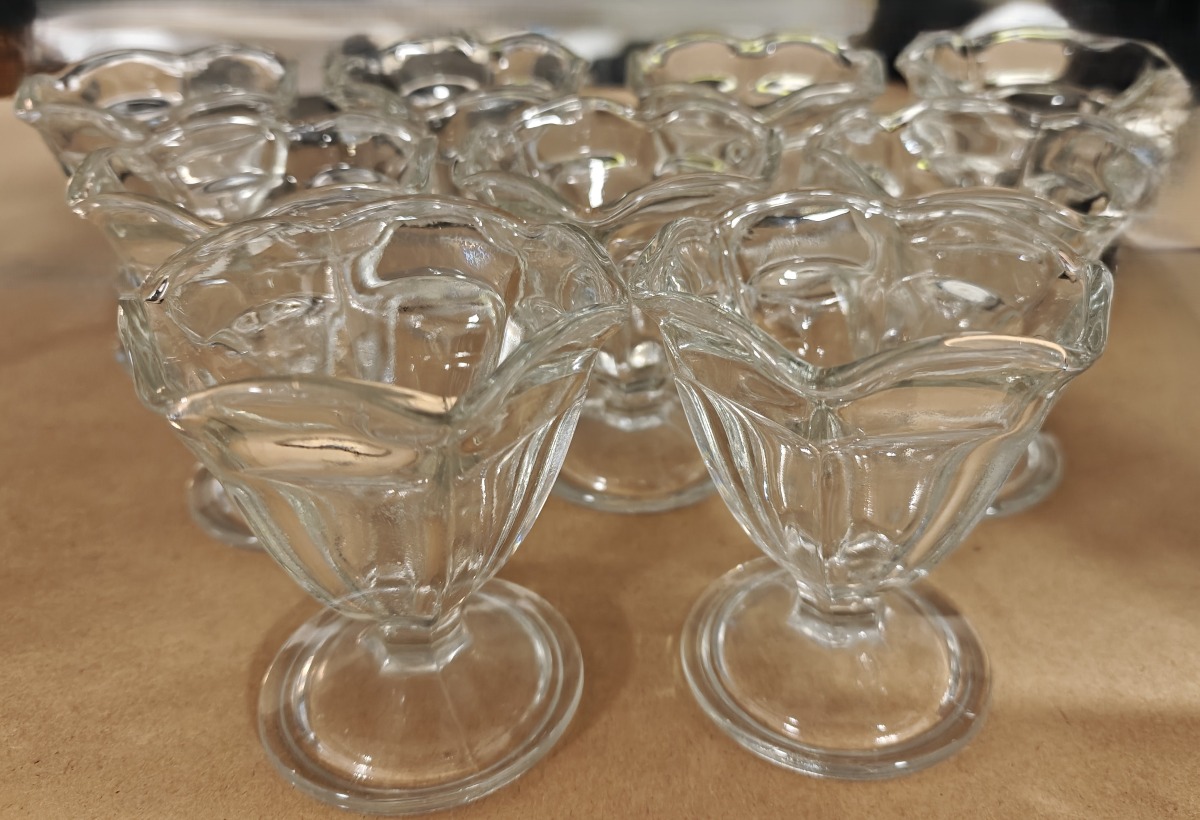52 Dessertglas i klar glas. Fordelt på 2 modeller: Store: 34 stk. Mellem: 18 stk. Brugte.
