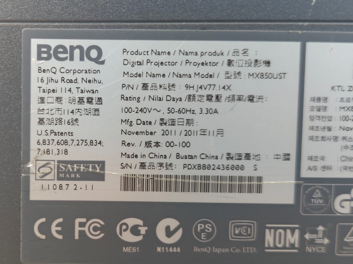 Digital projector m/beslag. Mrk Benq. Model: MX850UST. UniPoint fjernbetjent mikrofon. Model: AT853Rx (der medfølger det tilbehør, som ses i æsken). Brugte. MOMSFRI