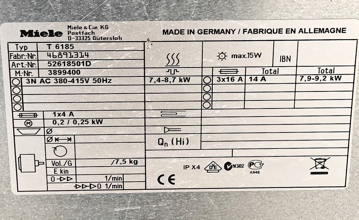 Industri tørretumbler. Mrk: Miele Professional. Type: T 6185. Med mange funktioner