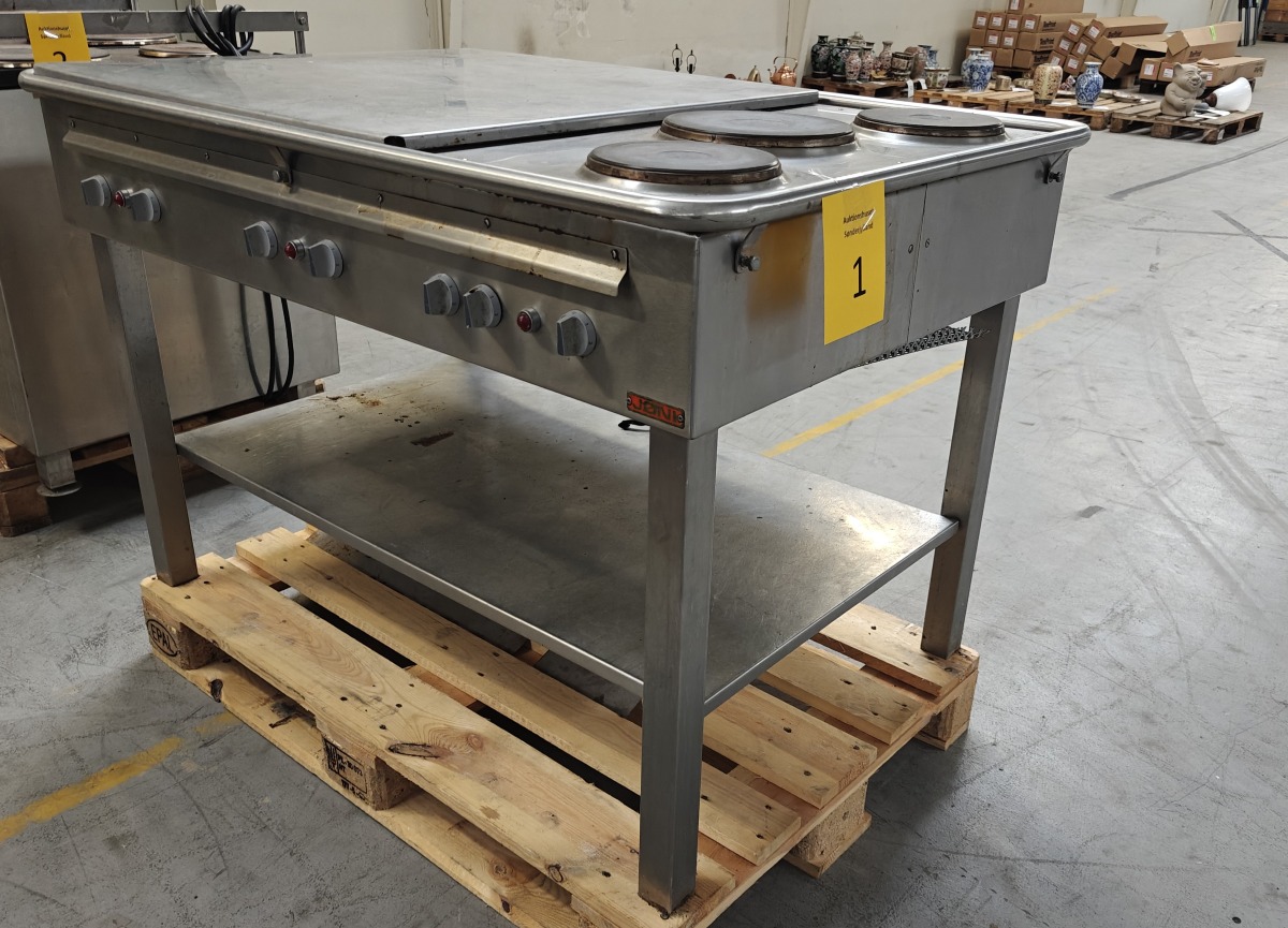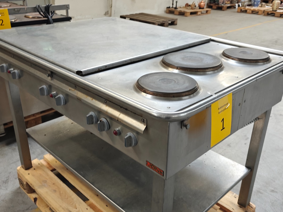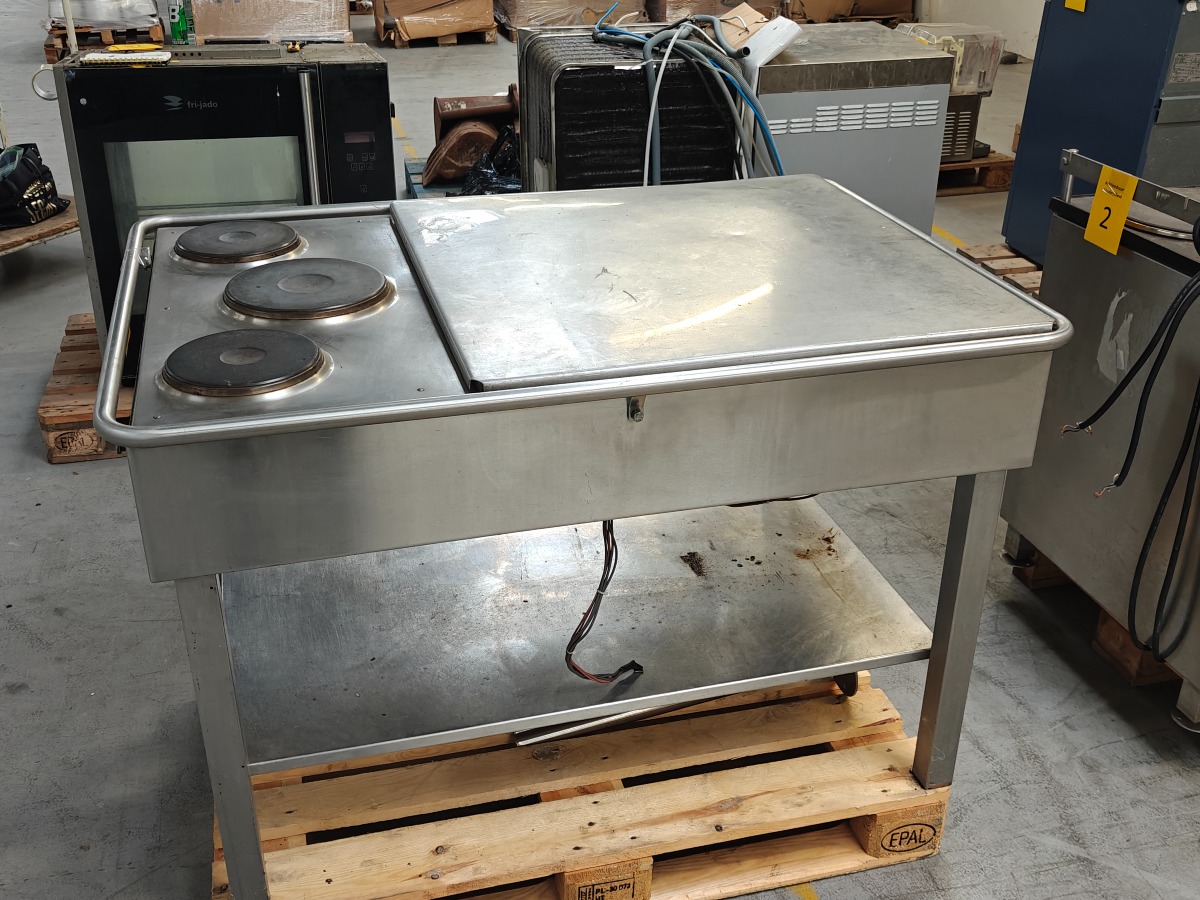 Kogebord/Industrikomfur i rustfrit stål. Mrk: Jøni
