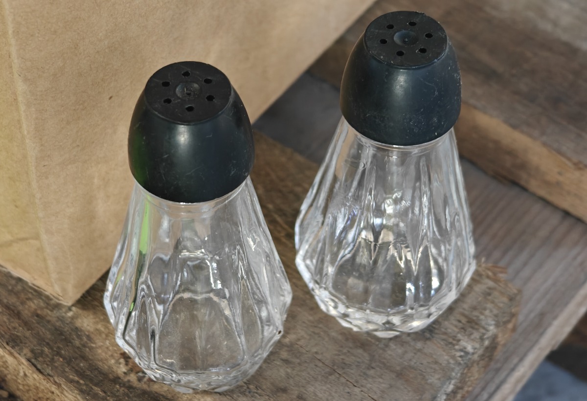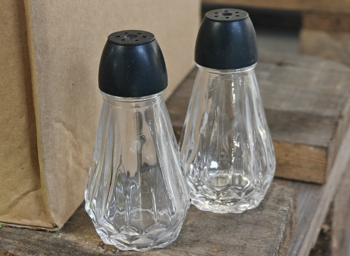 Ca 20 Salt/peberbøsser i klar glas (ens hætte på alle). France