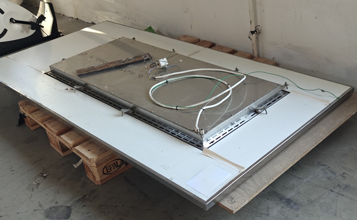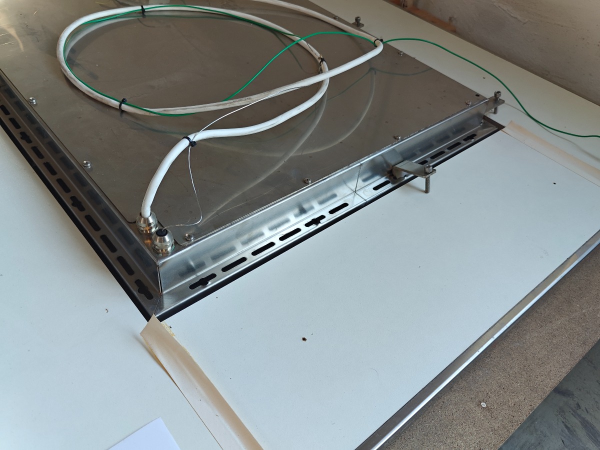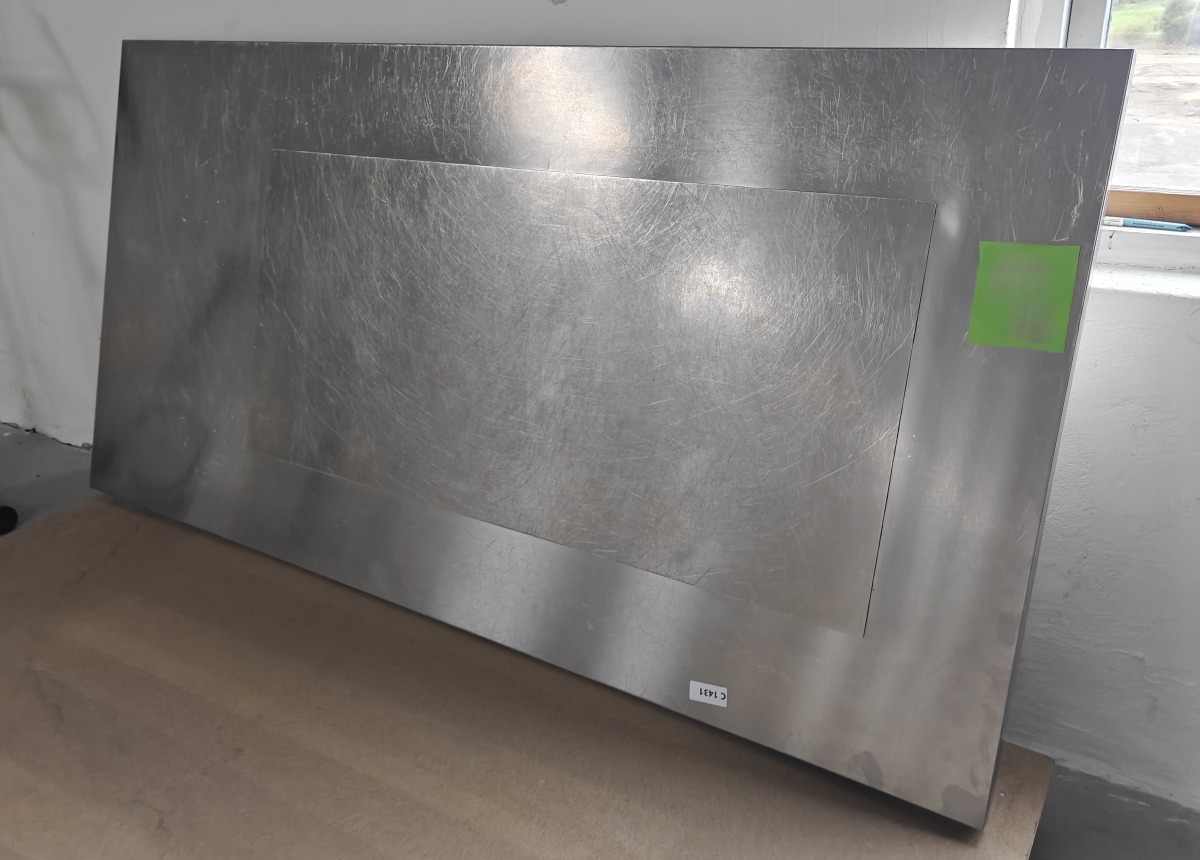 Varmebordplade i rustfast stål. Mål: 200 x 100 cm.