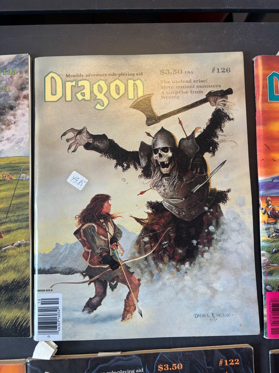 Dragon Magazine Lot, bind 118 - 128 (11) Fra samler og har diverse brugsspor, men nogenlunde stand. Der anbefales at komme til eftersyn og bese varerne. Fra dødsbo