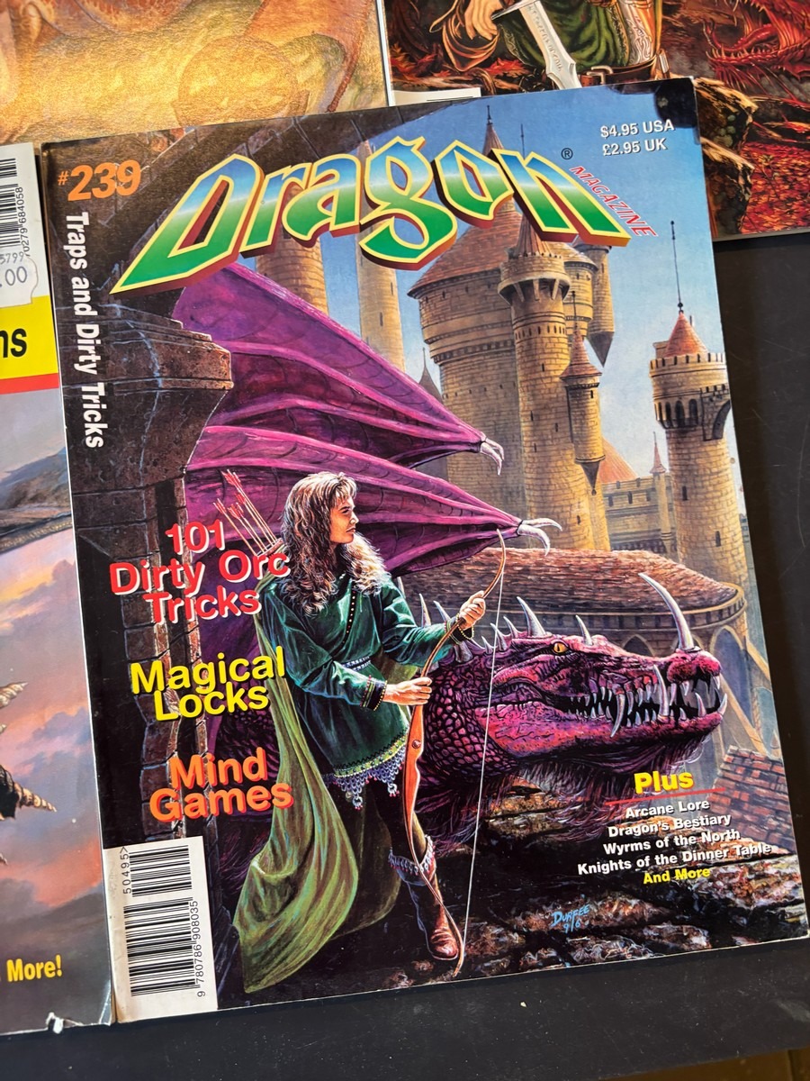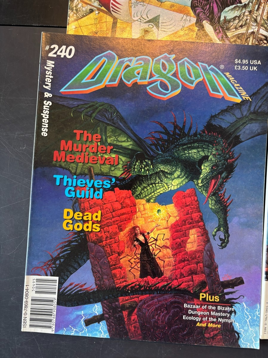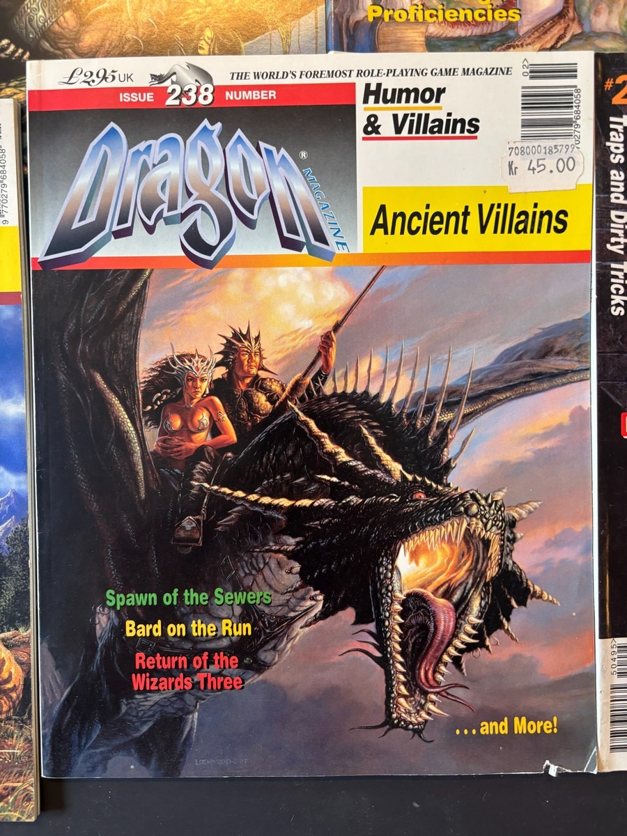 Dragon Magazine Lot, bind 237– 247 (11) Fra samler og har diverse brugsspor, men nogenlunde stand. Der anbefales at komme til eftersyn og bese varerne. Fra dødsbo