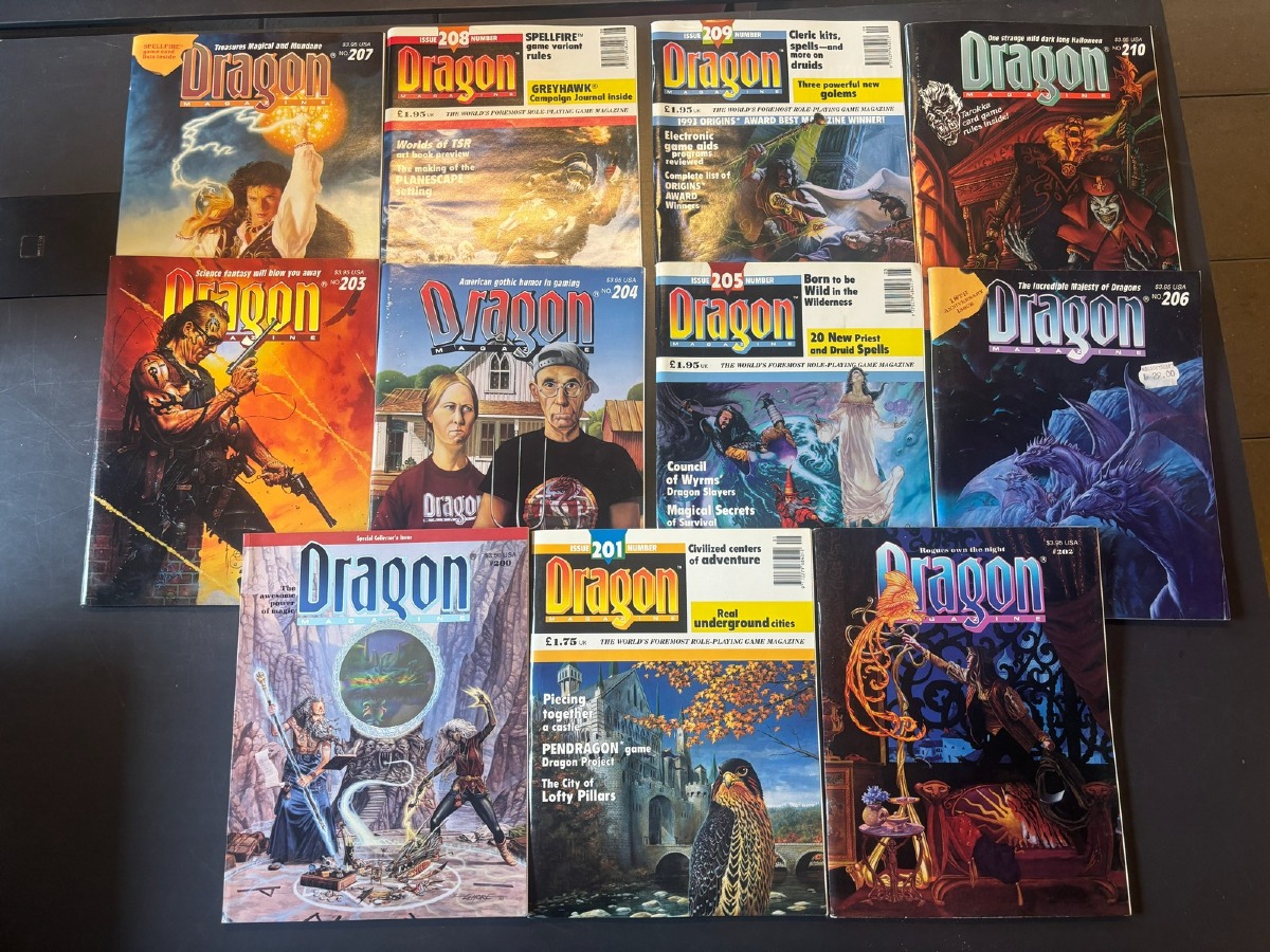 Dragon Magazine lot nr. 200–210 (11) Fra samler og har diverse brugsspor, men nogenlunde stand. Der anbefales at komme til eftersyn og bese varerne. Fra dødsbo