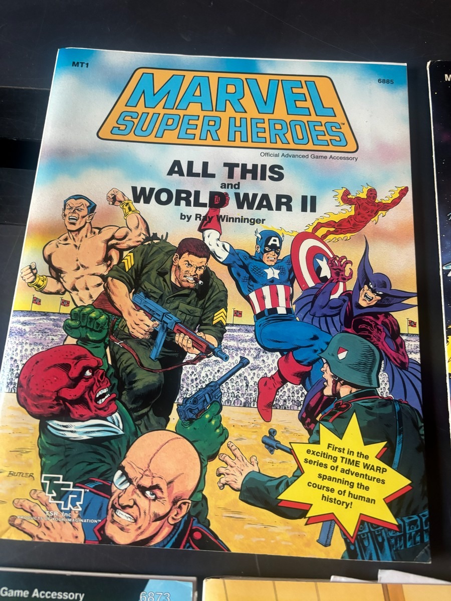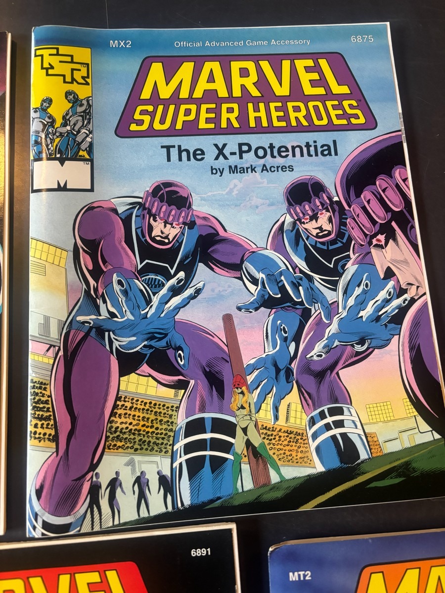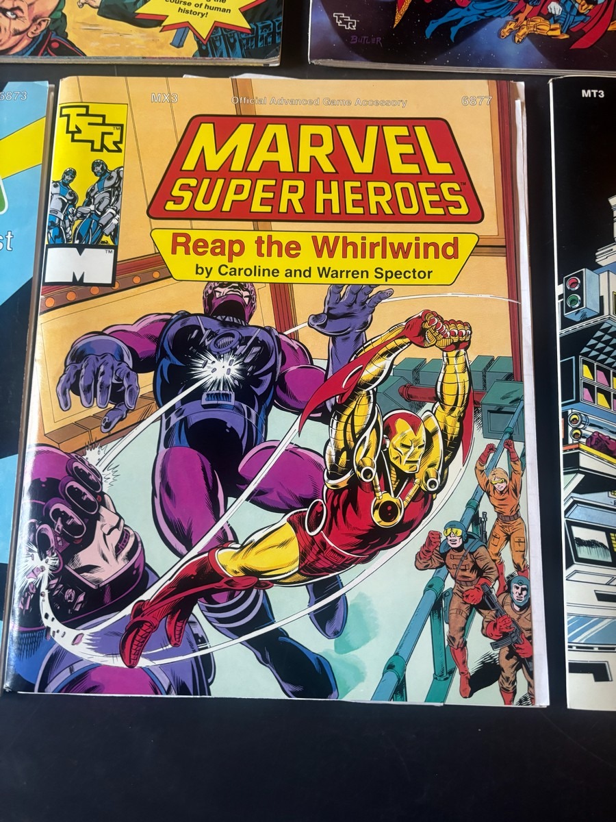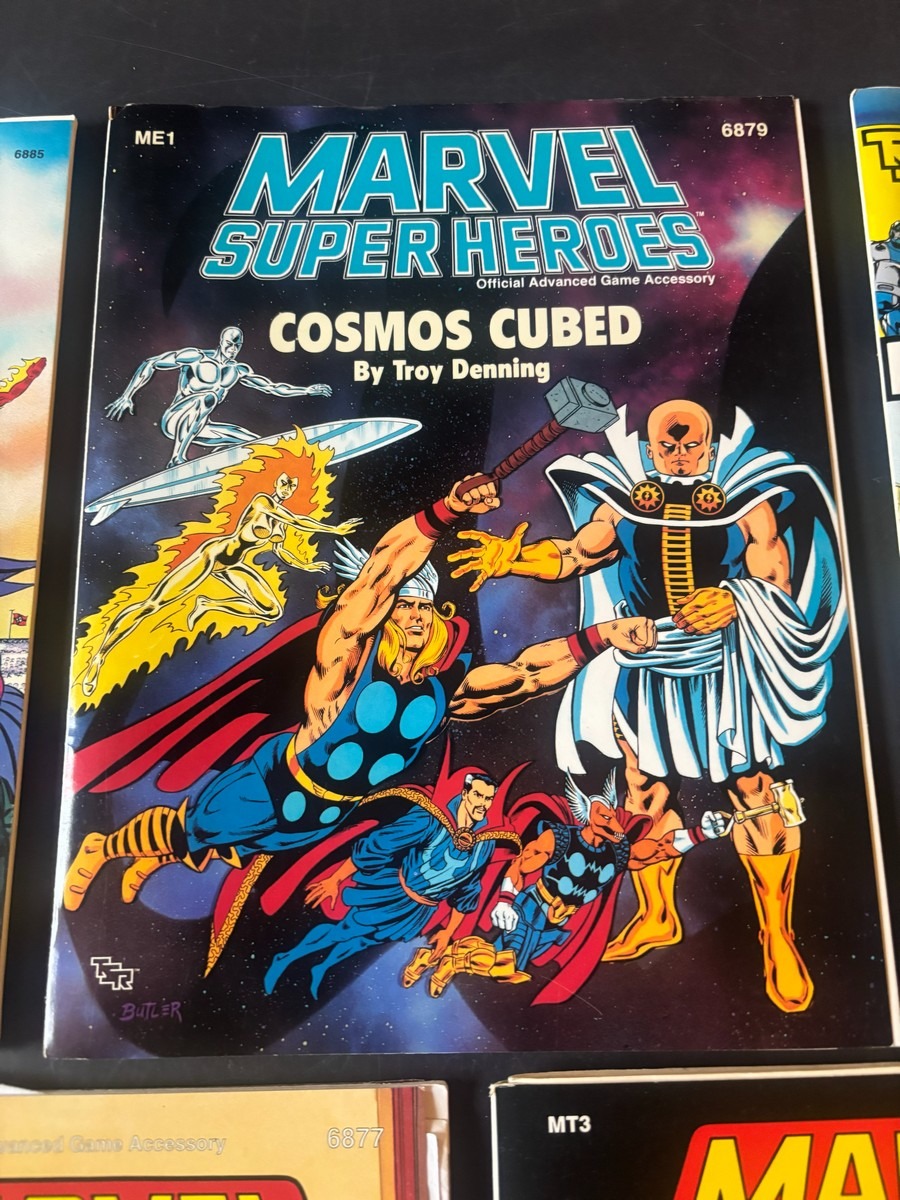 Marvel Super Heroes rollespilsscenarier (7). Fra samler og har diverse brugsspor, men nogenlunde stand. Der anbefales at komme til eftersyn og bese varerne. Fra dødsbo