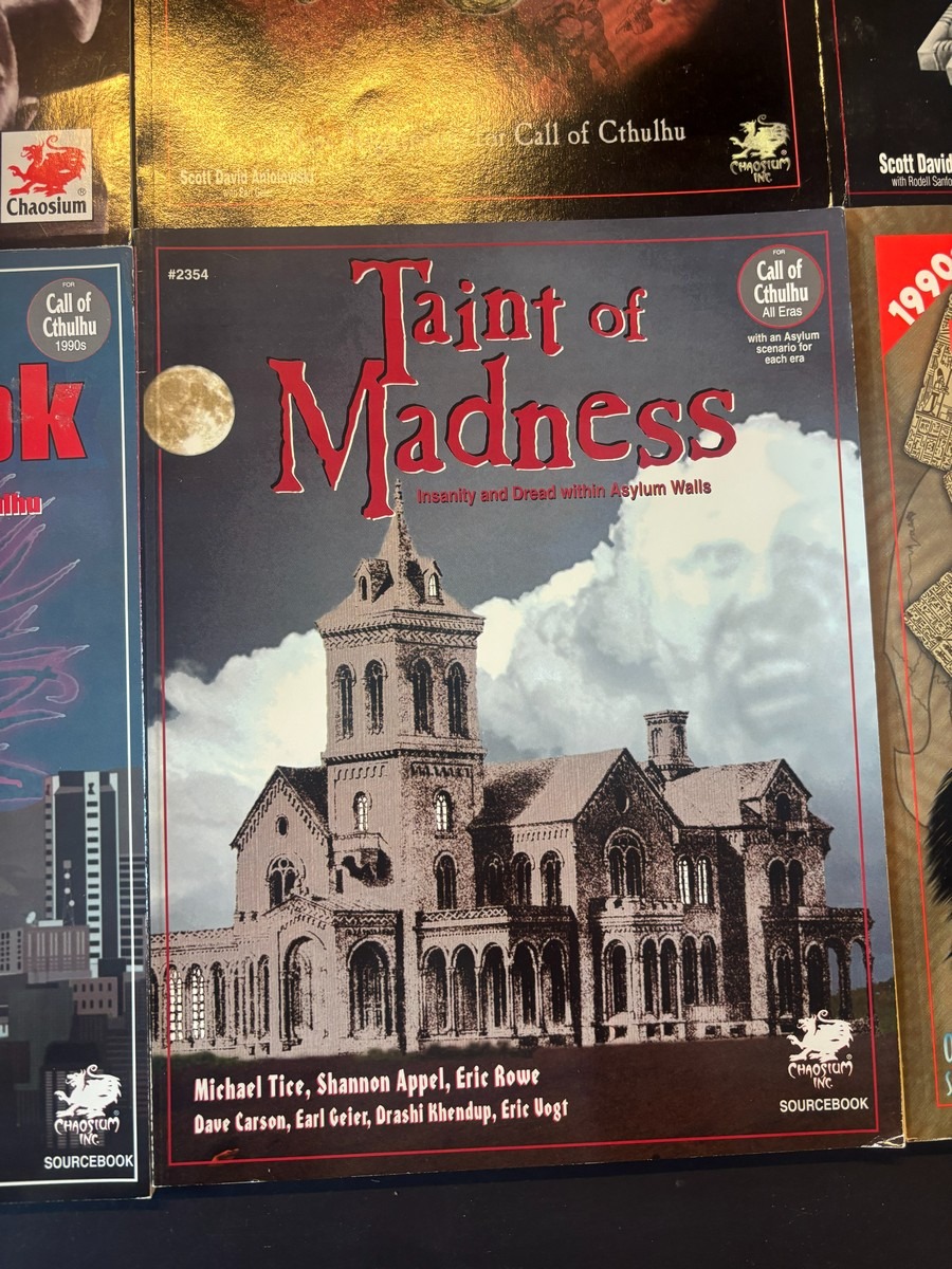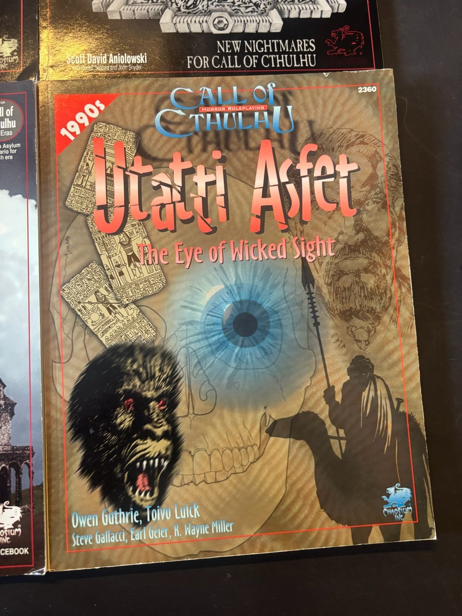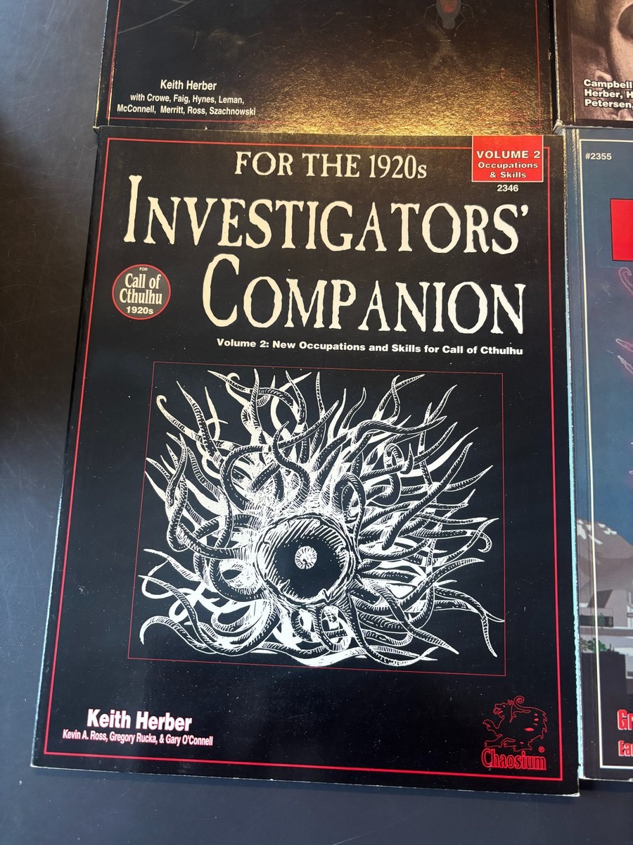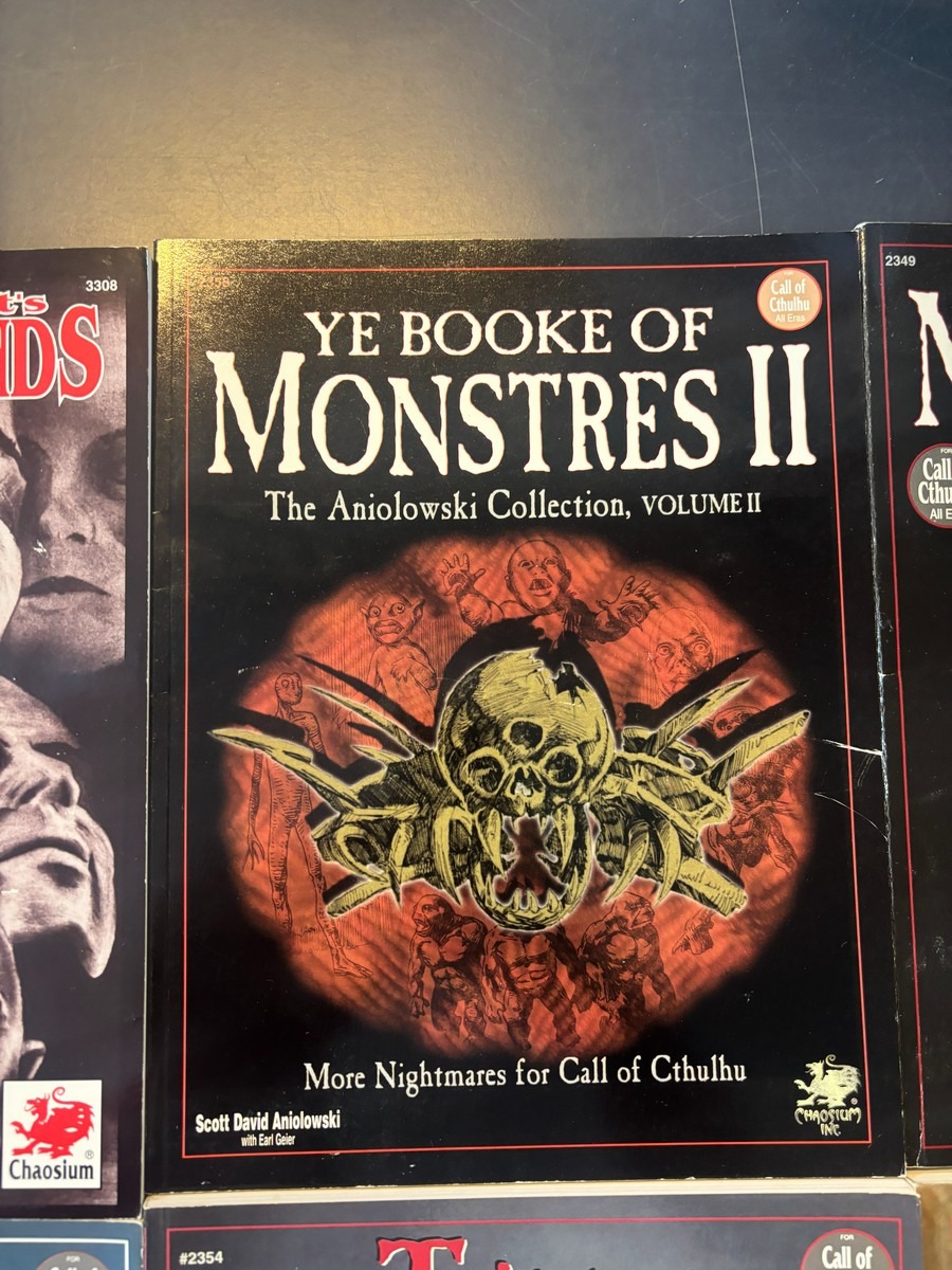 Call of Cthulhu Kildbøger & Scenarier – Investigators Companion, Dreamlands, Ye Booke of Monsters m.fl. (8). Fra samler og har diverse brugsspor, men nogenlunde stand. Der anbefales at komme til eftersyn og bese varerne. Fra dødsbo