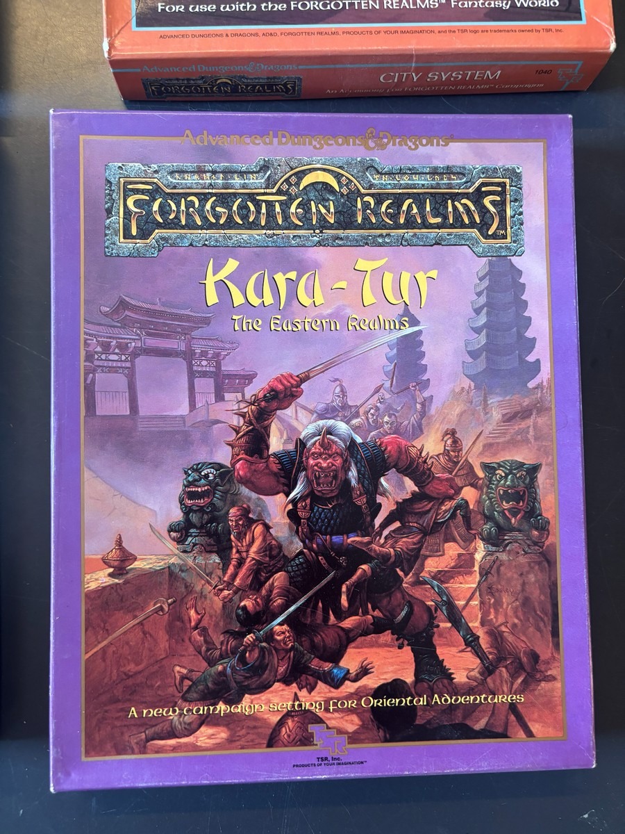 D&D / Forgotten Realms Boxed Sets – Undermountain, Kara-Tur, City System + Rules Cyclopedia (5). Fra samler og har diverse brugsspor, men nogenlunde stand. Der anbefales at komme til eftersyn og bese varerne. Fra dødsbo