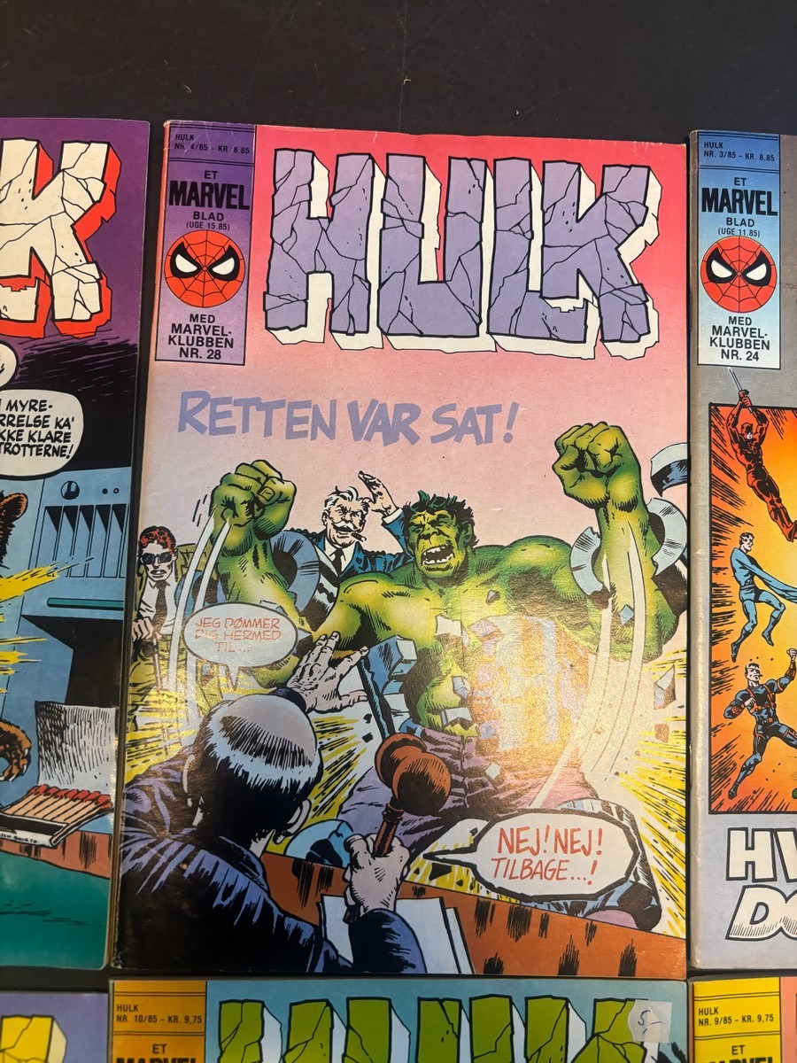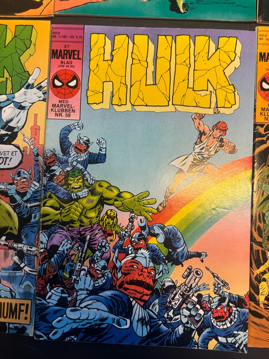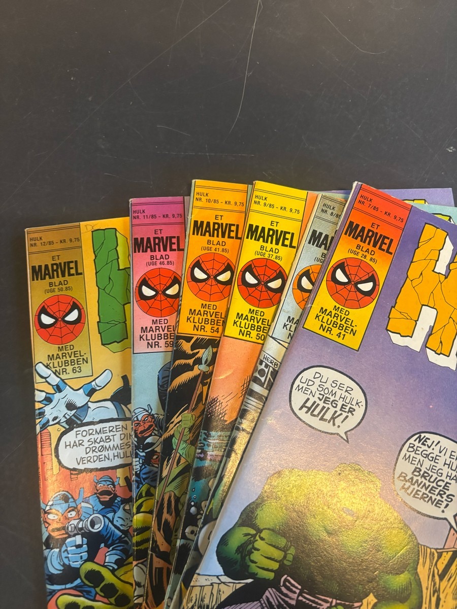 Marvel Hulk tegneserie, bind 1-12. Fra samler og har diverse brugsspor, men nogenlunde stand. Der anbefales at komme til eftersyn og bese varerne. Fra dødsbo