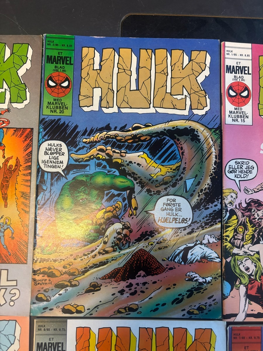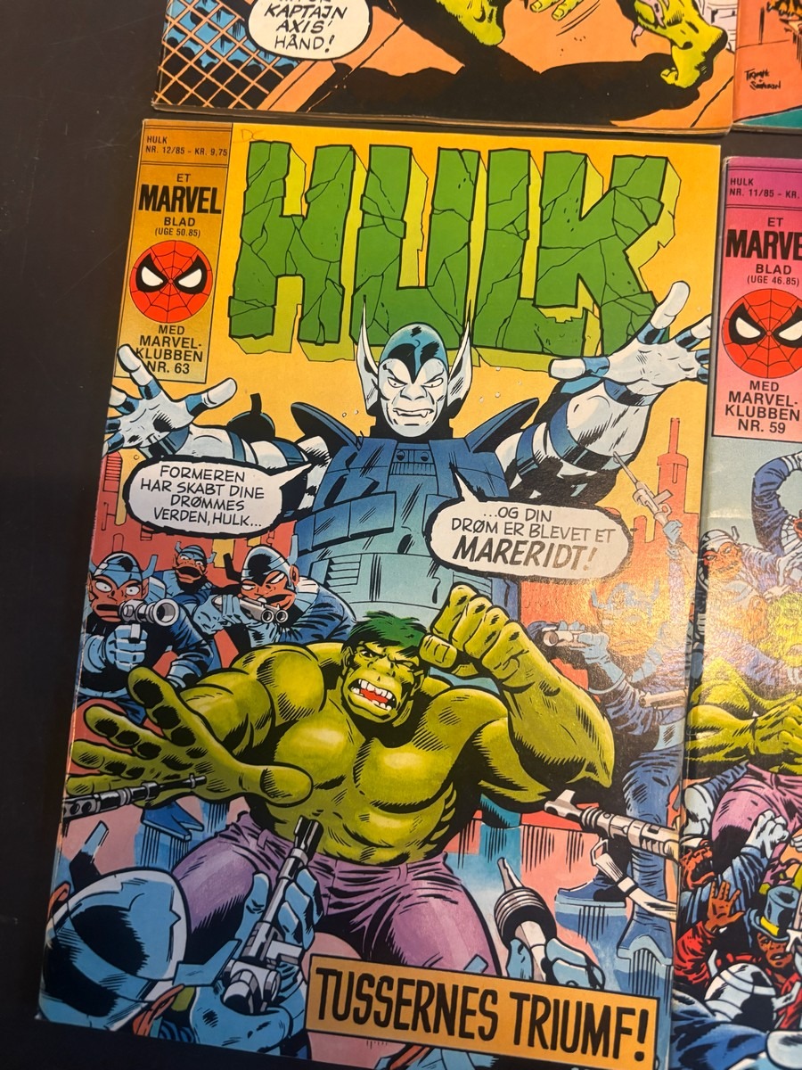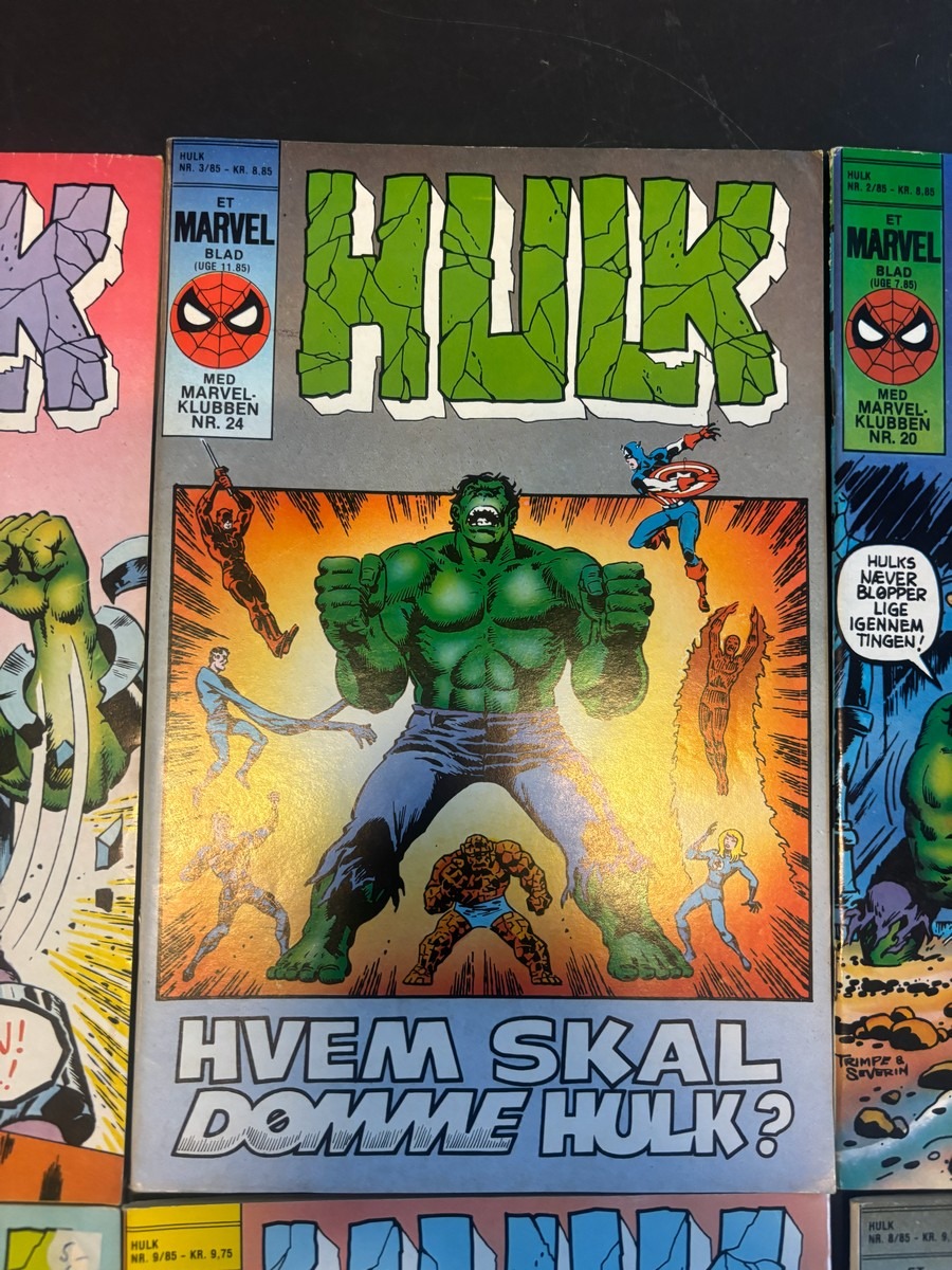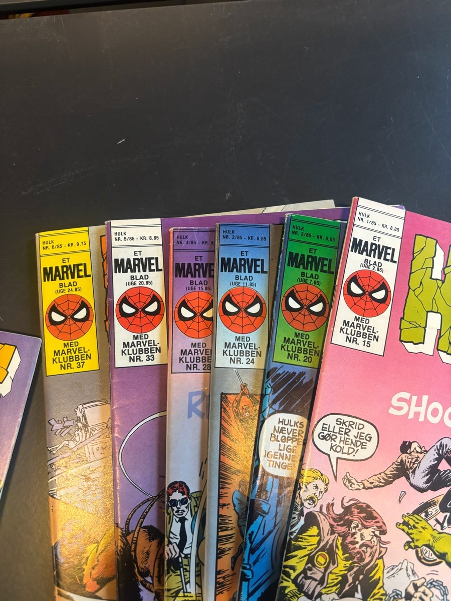 Marvel Hulk tegneserie, bind 1-12. Fra samler og har diverse brugsspor, men nogenlunde stand. Der anbefales at komme til eftersyn og bese varerne. Fra dødsbo