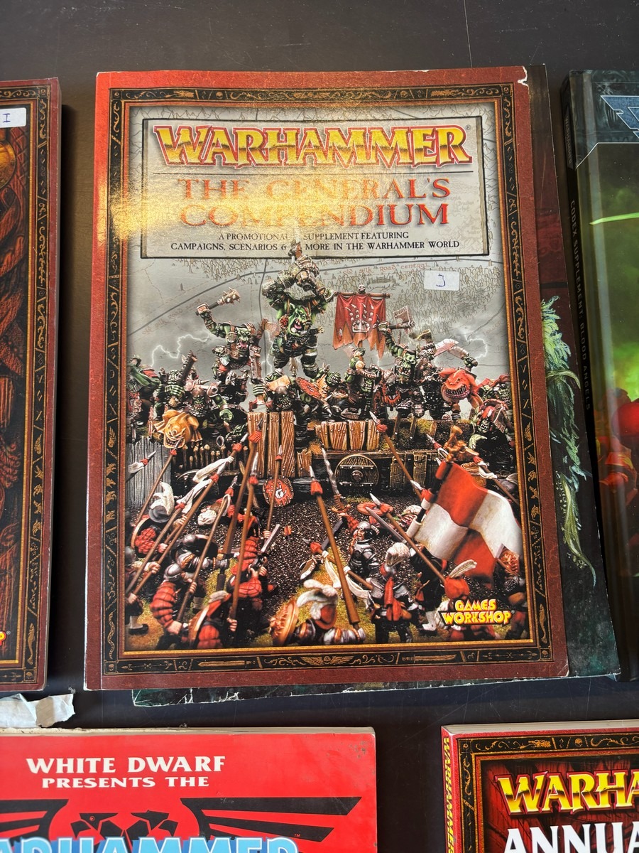 Warhammer & Warhammer 40K Lot – Chronicles, Annuals, Generals Compendium & Codex Blood Angels (5). Fra samler og har diverse brugsspor, men nogenlunde stand. Der anbefales at komme til eftersyn og bese varerne. Fra dødsbo