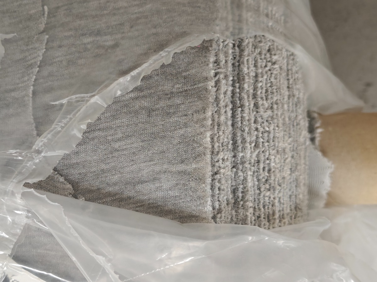 1 rl. Stof: Materiale: Special Rib Spacer. Farve: Gråmeleret. Mål: L: ukendt. B: 160 cm.