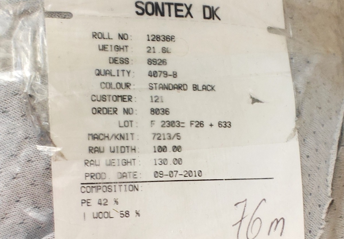 2 rl Stof. Materiale: 42% PE. 58% Uld. Farve: Gråmeleret/sort (2 nuancer). Mål: L: ukendt. B: hhv. 170 & 180 cm.