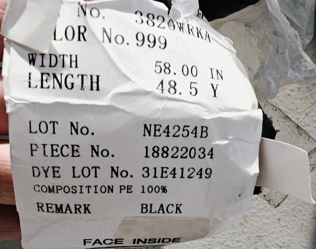 2 rl. Stofrester: Materiale: 100% PE. Farve: Sort. Mål: L: ca 40 m. B: ca 150 cm.