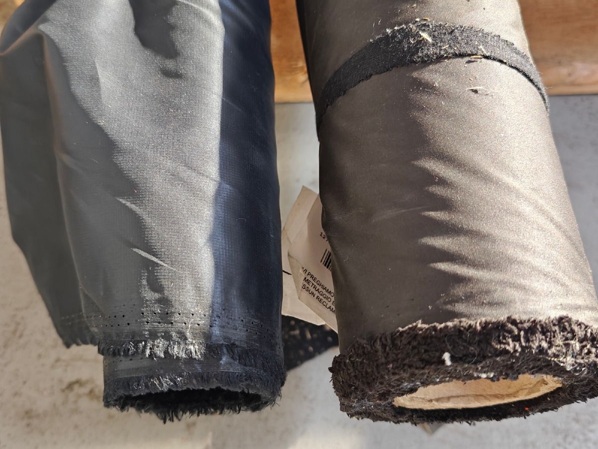 2 rl. Stofrester: Materiale: 100% PE. Farve: Sort. Mål: L: ukendt. B: 155 cm.