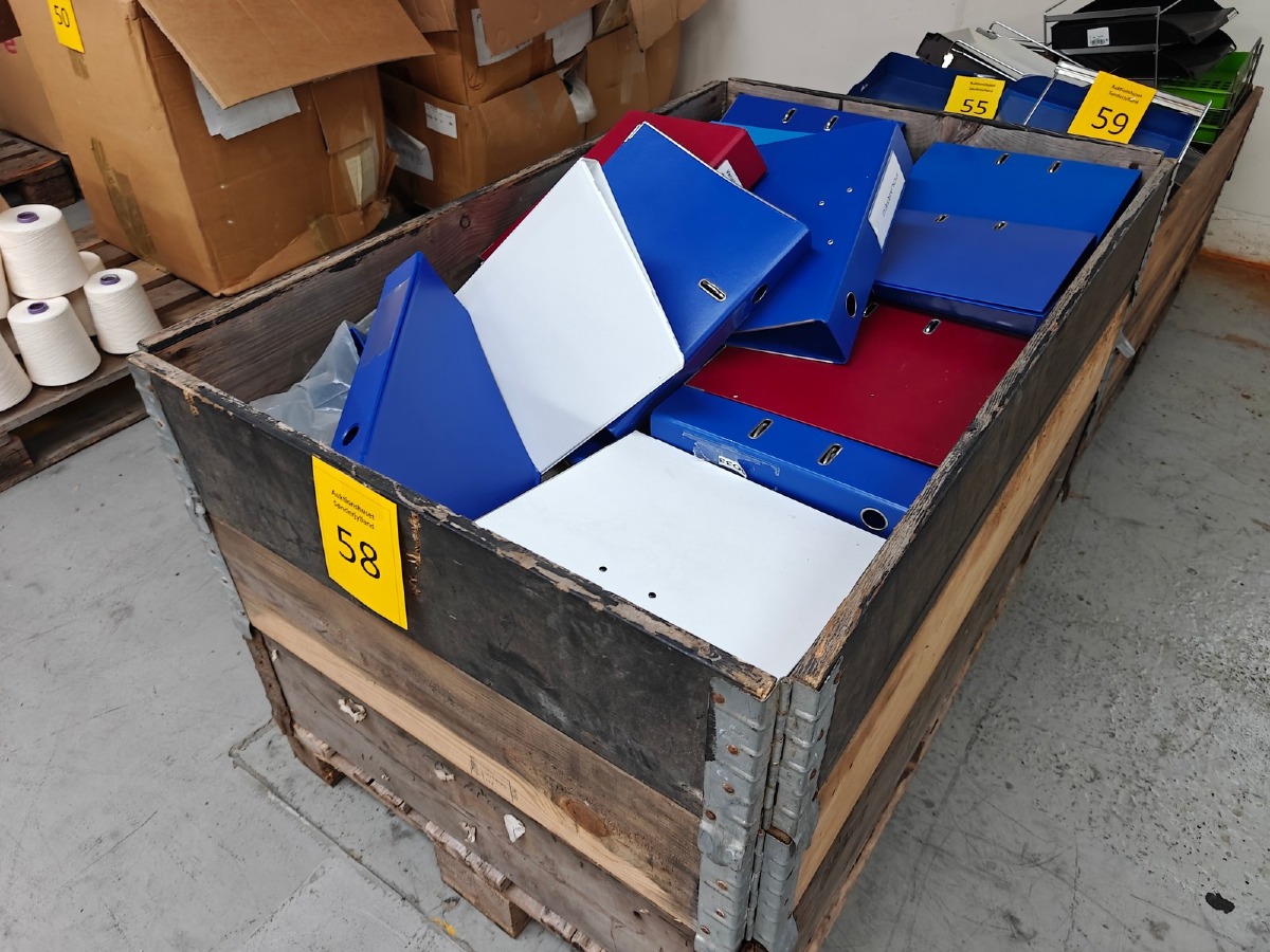 Diverse mapper i blå, rød og hvid.