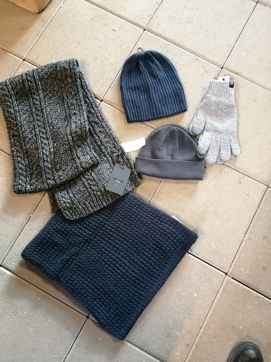 2 stk. huer - blå og grå (Jack&Jones og Only and sons), grå handsker med touch (Jack&Jones) & grå halstørklæde (Only and sons) Blå tube tørklæde (Jack&Jones). Ubrugte, stadig med mærker.