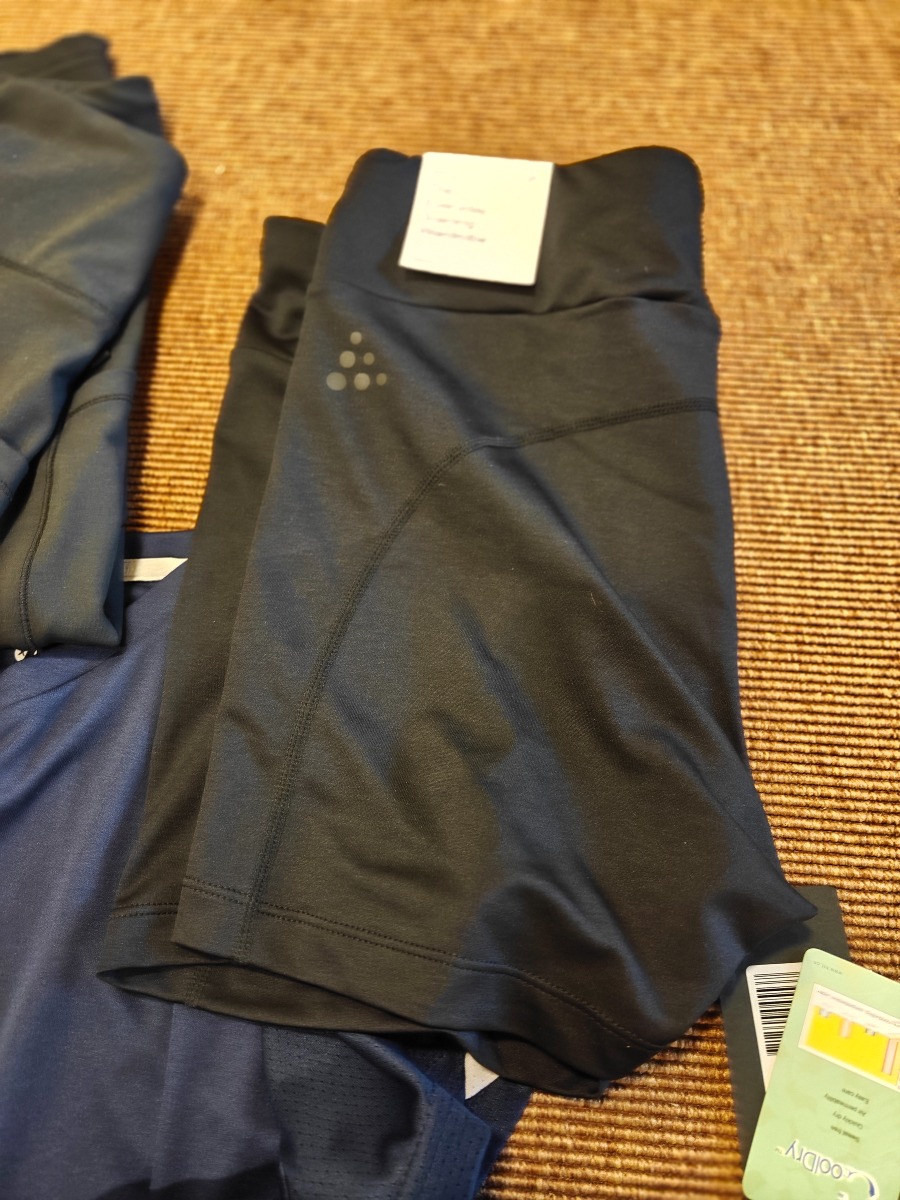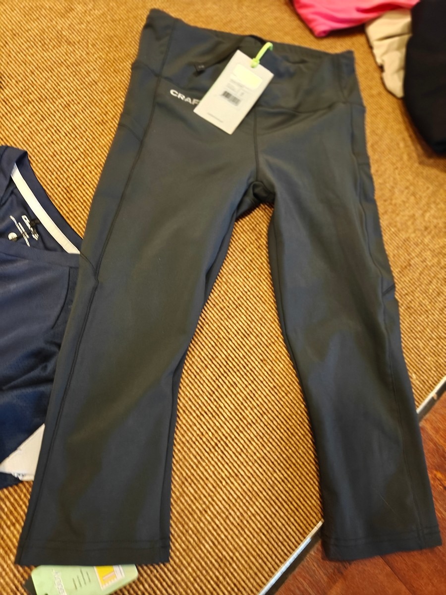 Dame basic sportstøj str. XS. 4 stk. t-shirts, 1 par shorts og 1 par leggings. Dansk kvalitet. Oprydning for virksomhed. Ubrugt.